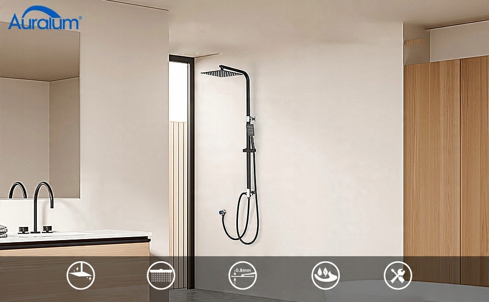 ✔ Вільно регульована висота тримача душової лійки за допомогою затискача