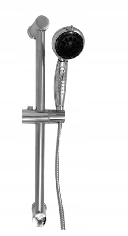 Душовий гарнітур на штанзі. Набір оснащений 5-функціональною душовою ручкою та душовим шлангом, який завдяки своїй функціональності ідеально підходить для будь-якої ванної кімнати. Набір підходить для всіх змішувачів для душу та ванни