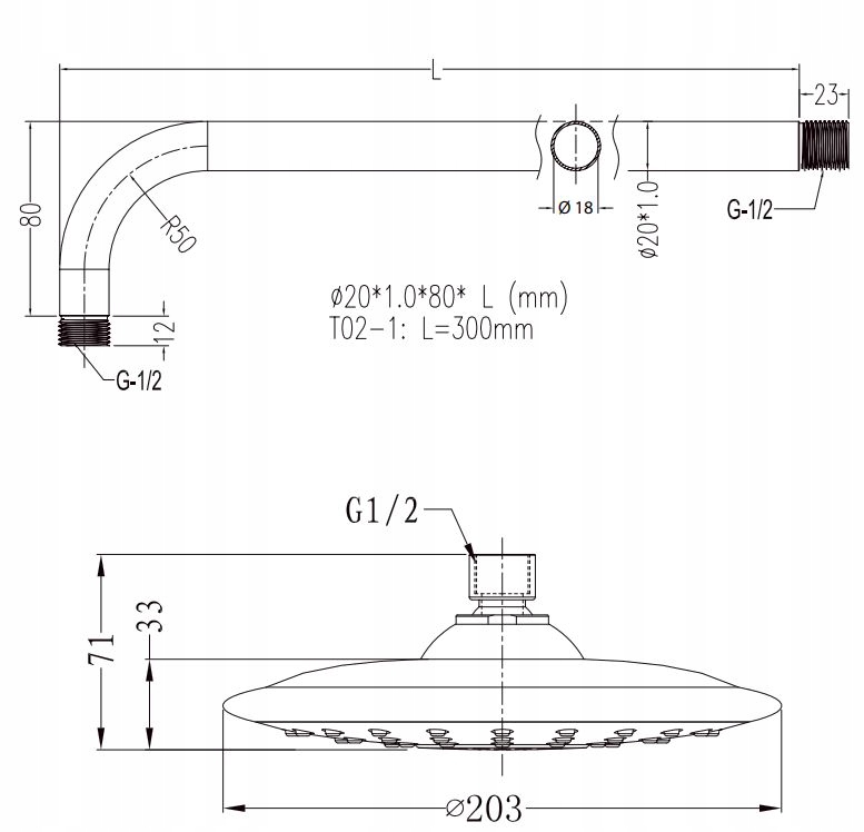 Дощовий душ і кронштейн OMNIRES: