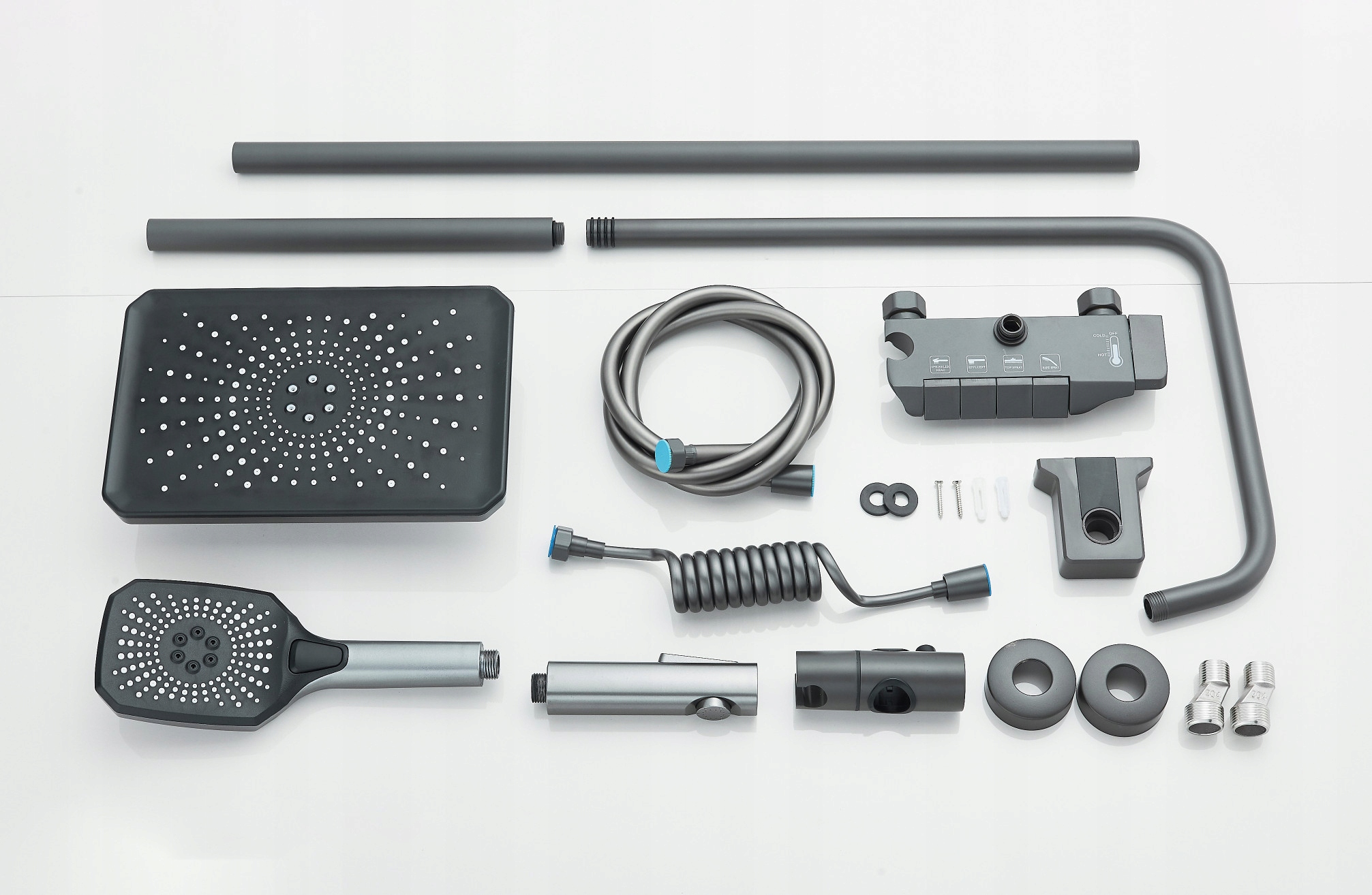 Цей вдосконалений душовий набір із панеллю керування — це поєднання сучасного дизайну та легкого керування функціями душу. Завдяки цьому ви можете адаптувати свій досвід купання до своїх індивідуальних уподобань.
