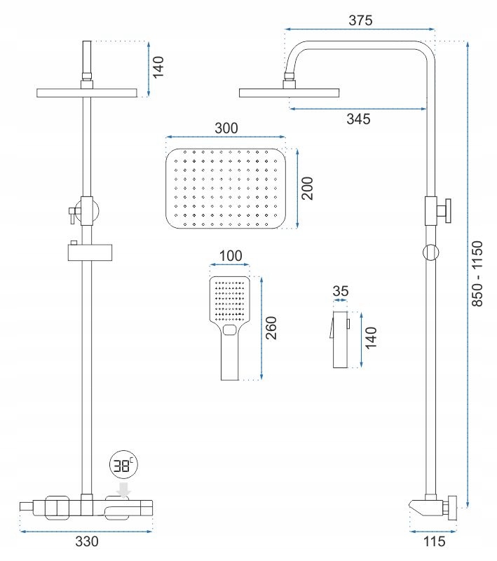 - Змішувач: Одноважільний з термостатом