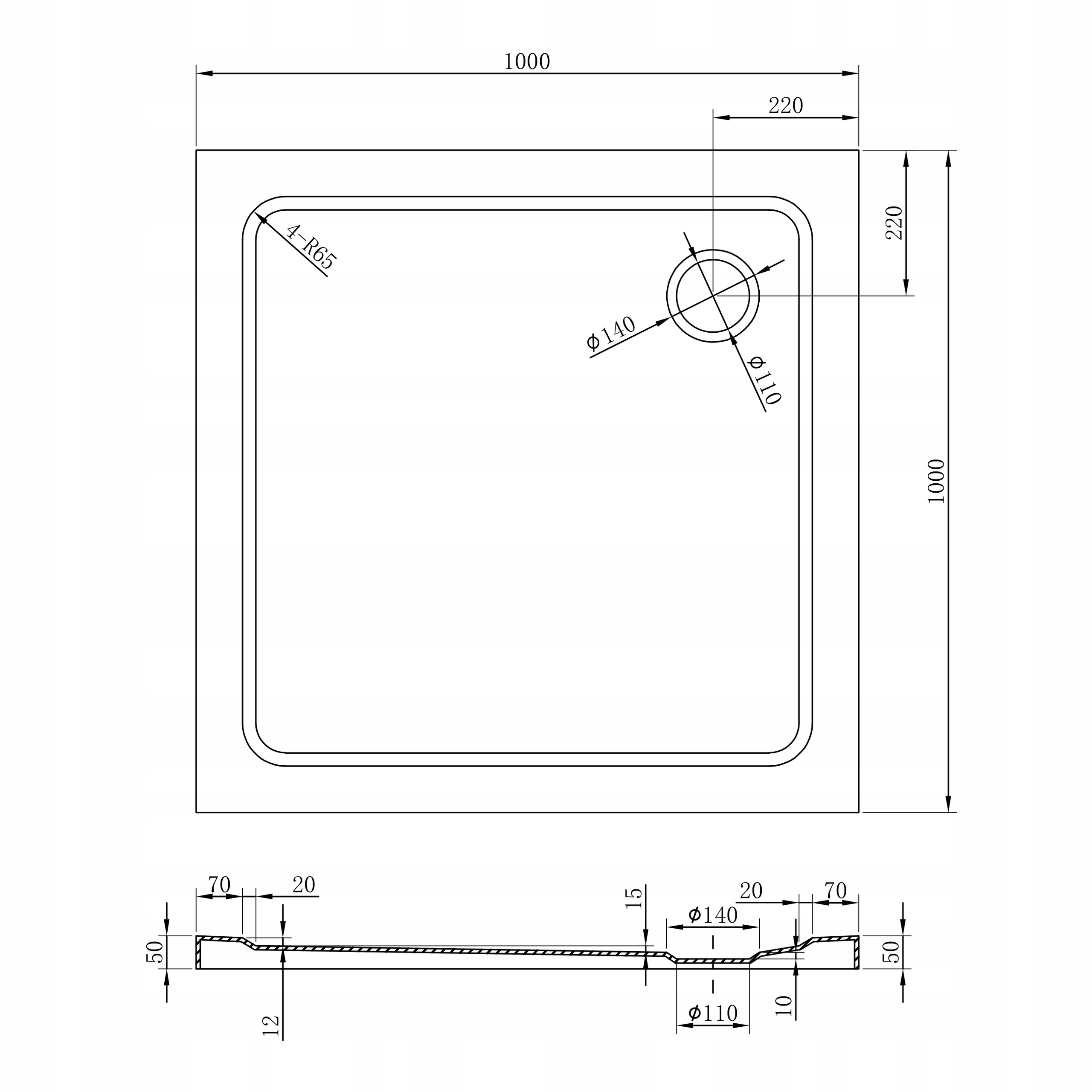 1️⃣ Душовий піддон білого кольору висотою 50 мм