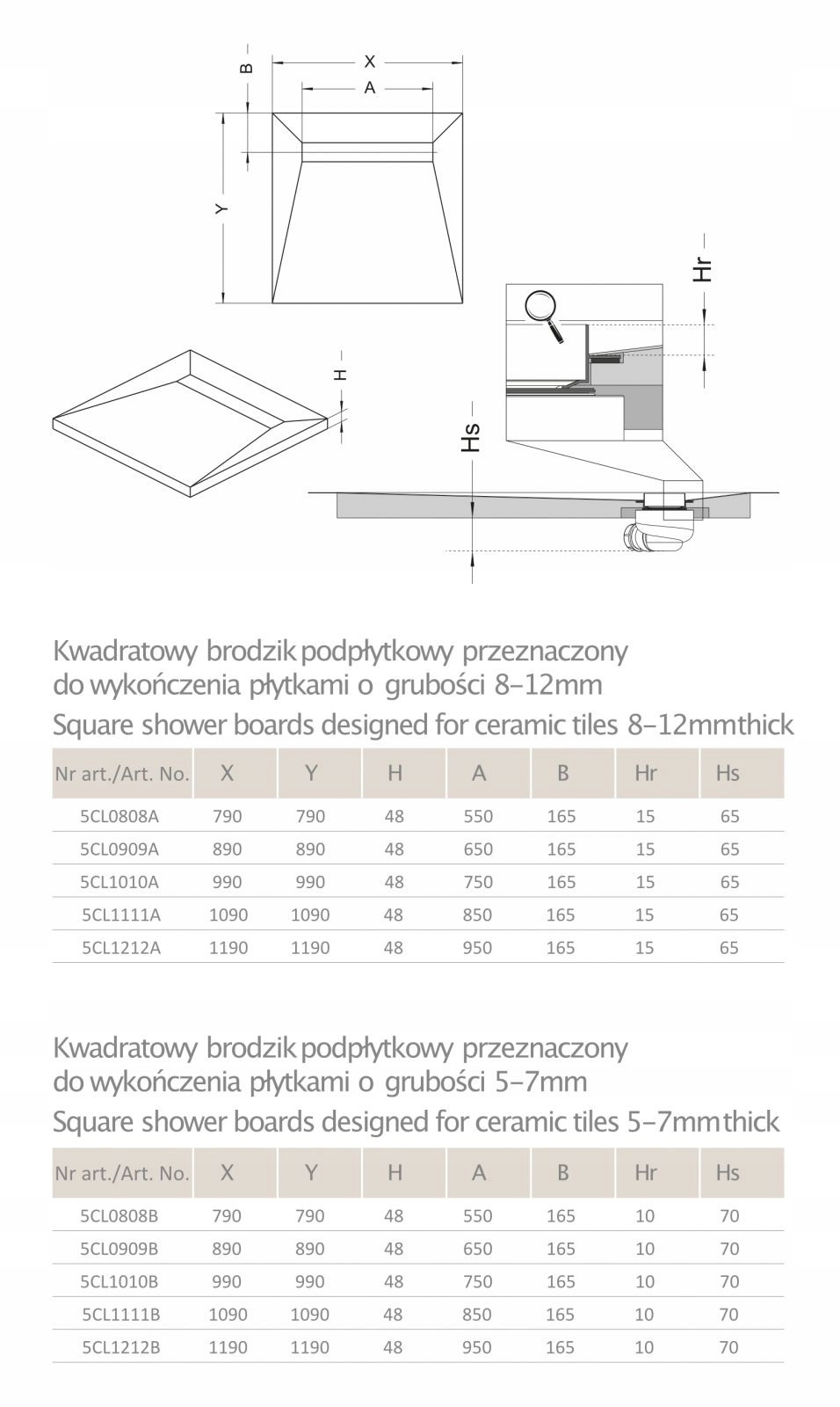 - душовий піддон, призначений для обробки плиткою товщиною 8-12 мм