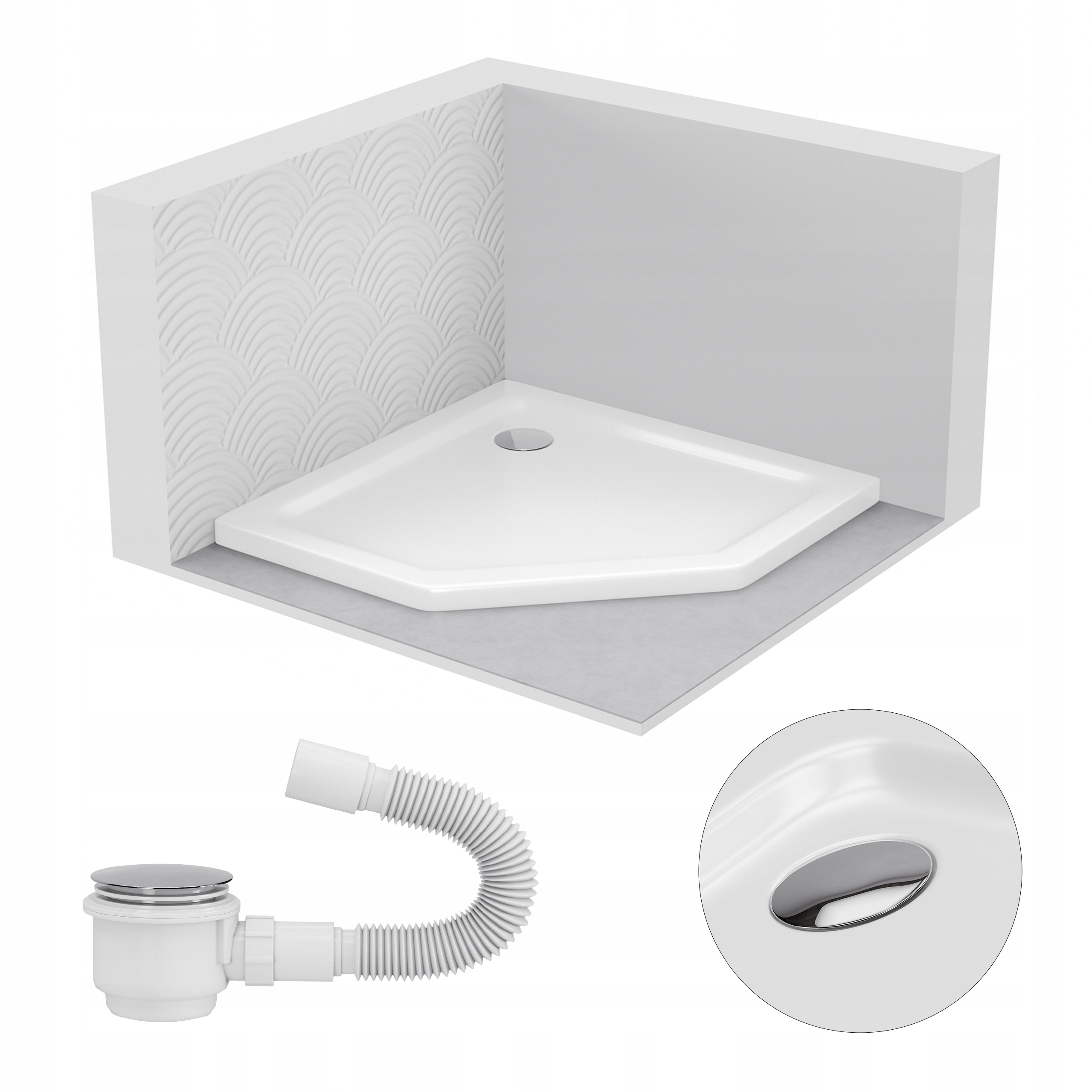 ПІДДОН 90x90, П'ЯТИКУТНИЙ, БІЛИЙ + СИФОН
