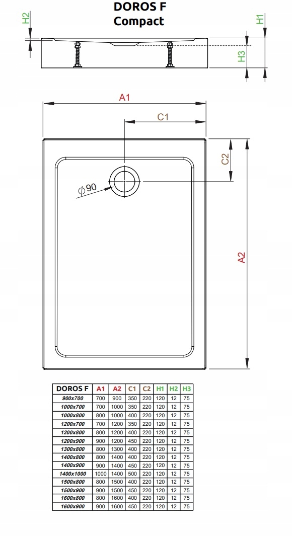 .....................................................Дуже неглибокий прямокутний душовий піддон 150x80 Doros F Compact Stone Anthracite від:................................................
