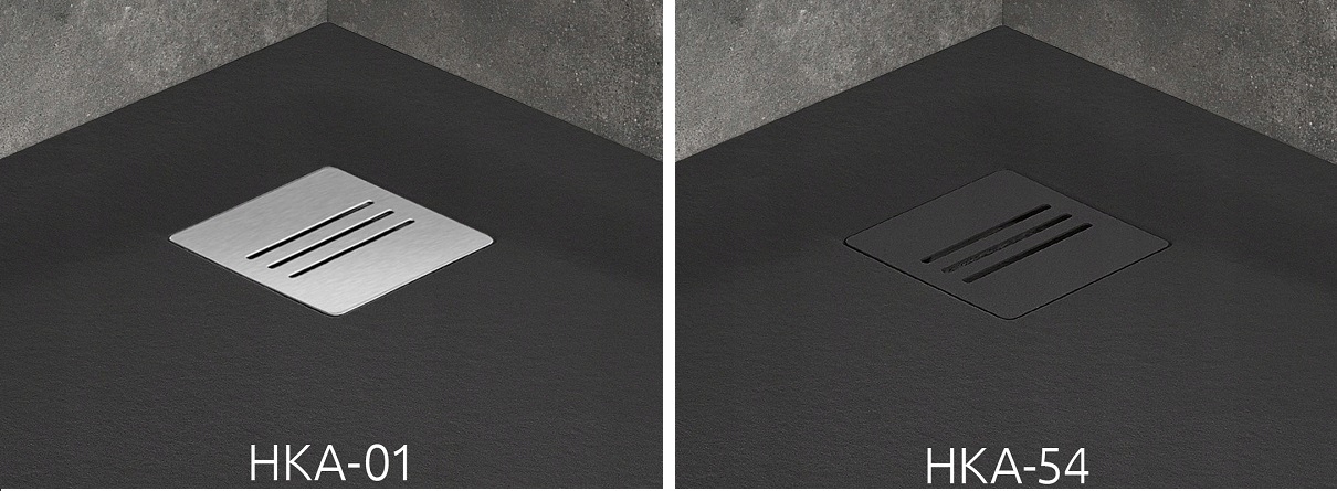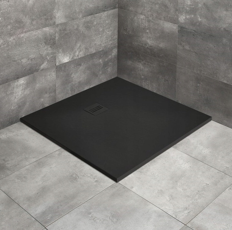 - Дуже неглибокий, чорний душовий піддон із мармурового конгломерату