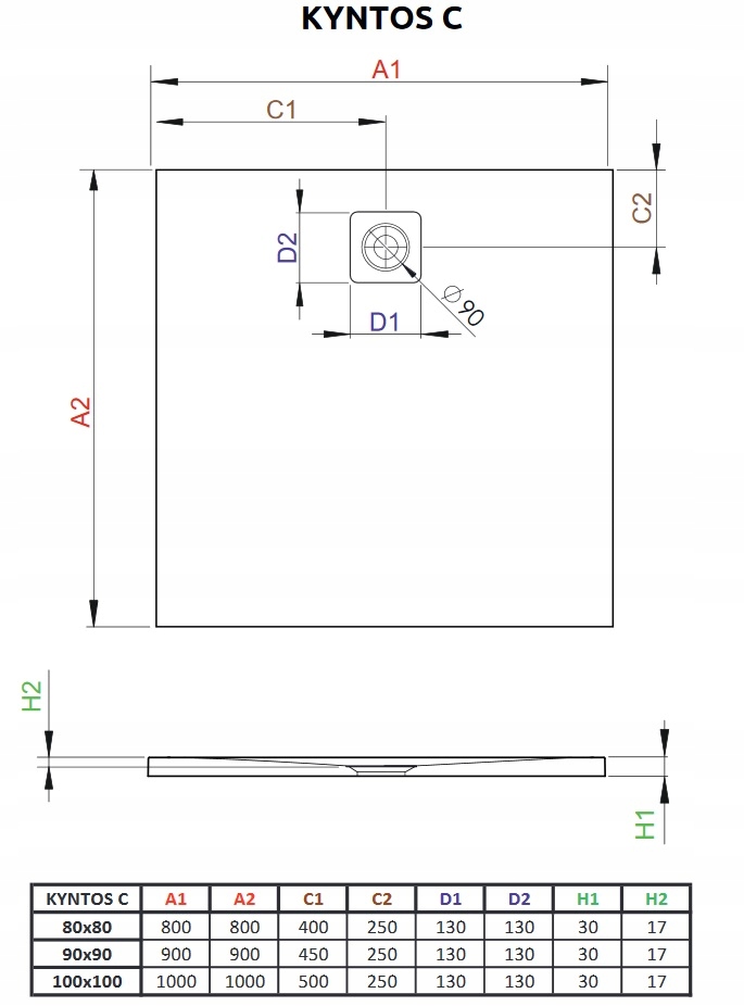 Предметом продажу є квадратний душовий піддон KYNTOS C 80x80x3x1.7cm чорного кольору з сифоном HS1 Душовий піддон виготовлений з мармурового конгломерату, дуже неглибокий, призначений для установки безпосередньо на підлогу. Можливе виготовлення душового піддону за індивідуальними розмірами.