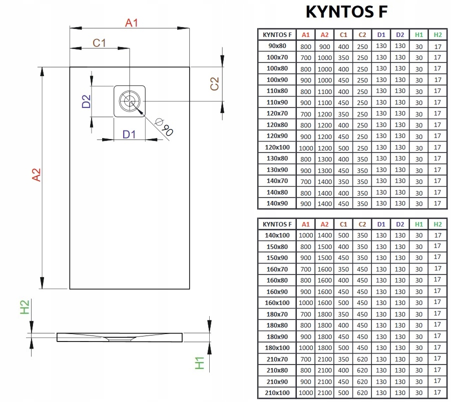 Предметом продажу є прямокутний душовий піддон KYNTOS F 140x100x3x1,7см білого кольору з сифоном HS1 Душовий піддон виготовлений з мармурового конгломерату, дуже неглибокий, призначений для установки безпосередньо на підлогу. Можливе виготовлення душового піддону за індивідуальними розмірами.