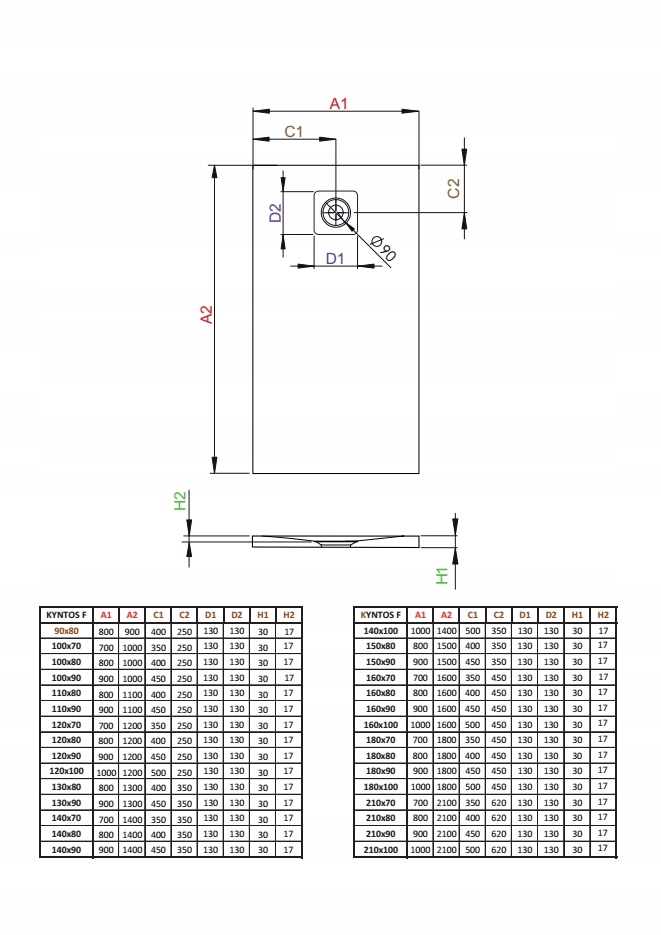 - ЗЛИВНИЙ ОТВОР: Ø 90 мм