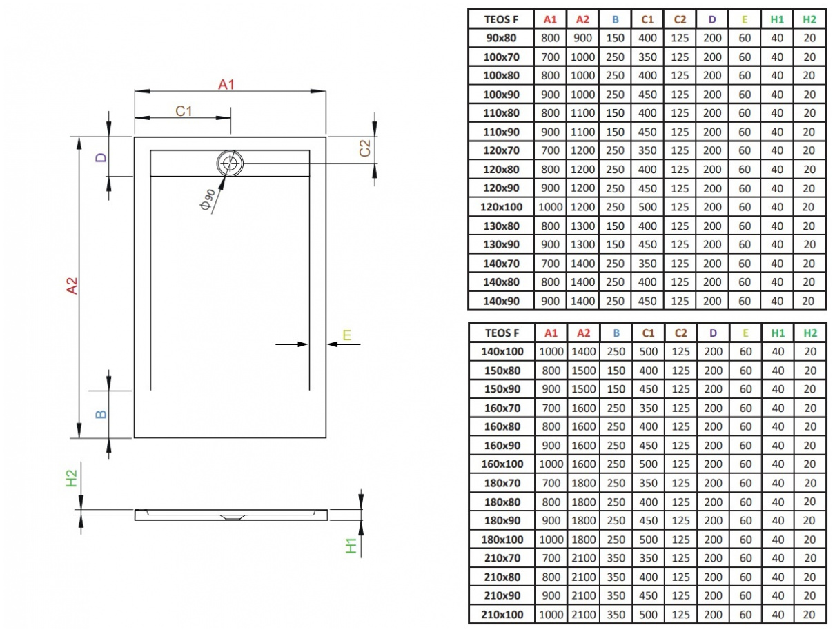 - ЗЛИВНИЙ ОТВОР: Ø 90 мм