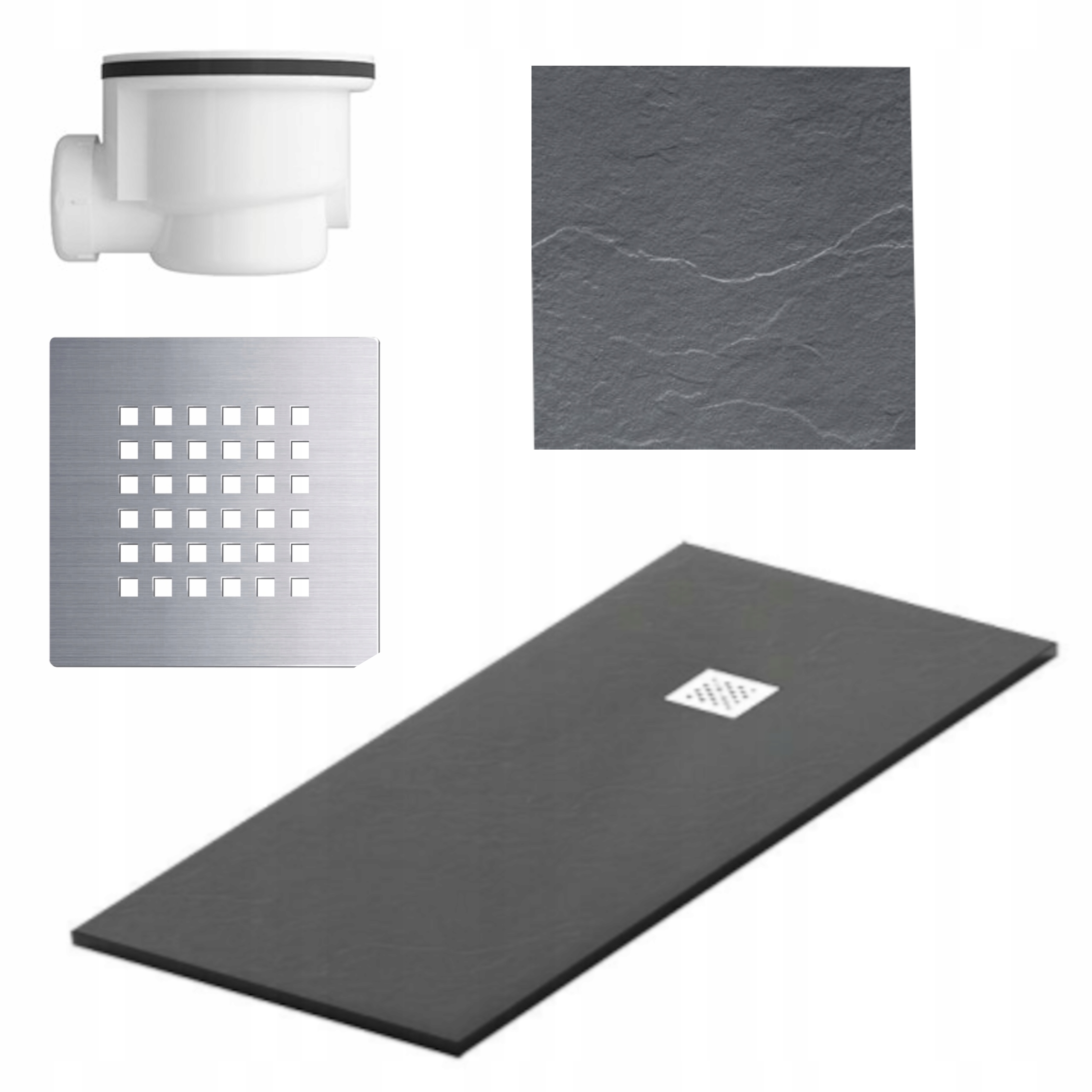 ДУШОВИЙ ПІДТОК НИЗЬКИЙ ТЕМНО-СІРИЙ КОНГЛОМЕРАТ 120x80 СМ