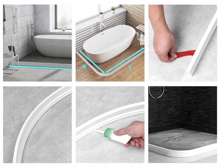 Ви можете зігнути його відповідно до навколишнього середовища, щоб ефективно зупинити перелив води. Ви також можете розрізати його ножем, щоб точно відповідати поверхні, на якій ви його використовуєте. Ця водонепроникна стрічка в основному призначена для наклеювання на підлогу у ванній і кухні, а також на дверях ванної кімнати.
