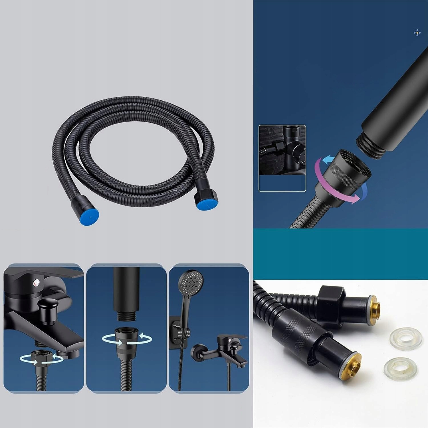 - 💧 - 【Вибухозахищений і герметичний】: Душовий шланг виготовлений зі здорового та безпечного гумового матеріалу, витримує високий тиск і високу силу розтягування, має гарну термостійкість, підходить для тривалого використання при 0-90°C, дизайн проти сплутування, красивий і простий у чищенні< /li>