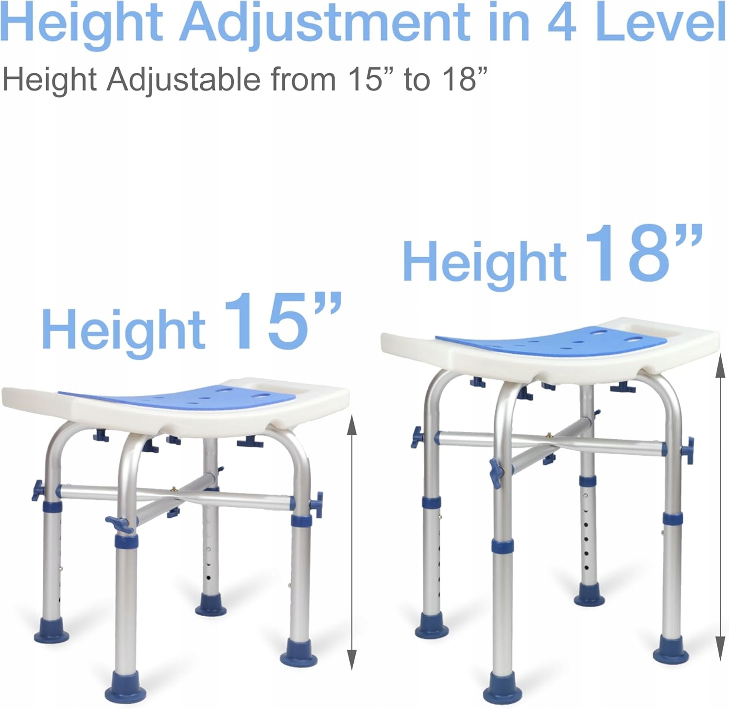 регульована висота - табурет можна встановити від 15 до 18 дюймів (38-46 см), адаптуючи його до індивідуальних потреб та типу ванни/душу. Легкий підйом та перенесення, табурет легкий, зручний і мобільний.
