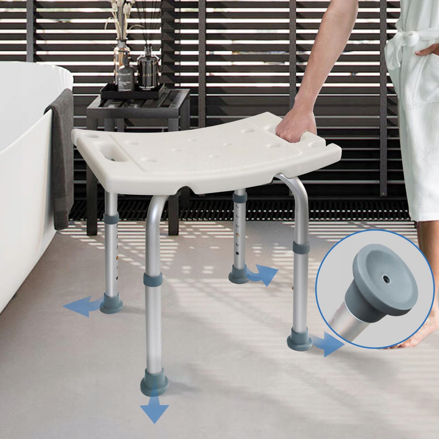 Цей високоякісний алюмінієвий душовий стілець забезпечує максимальне зчеплення на мокрі плитки завдяки гумовим ногам. Сидіння для душу має спеціально розроблену, некопильну поверхню з дренажними отворами, яка забезпечує відтік води та зручне, стабільне сидіння навіть у вологих кімнатах. Цей стілець у ванній кімнаті ідеально підходить для людей похилого віку, людей з обмеженою фізичною ефективністю, вагітними жінками або людьми під час одужання після операції.