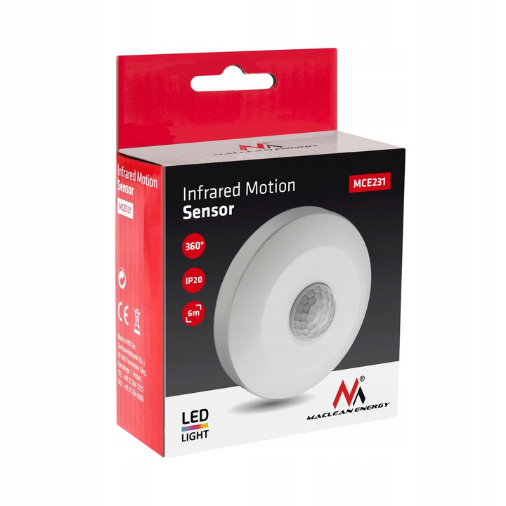 - PIR-датчик руху, датчик стелі Maclean Energy MCE231