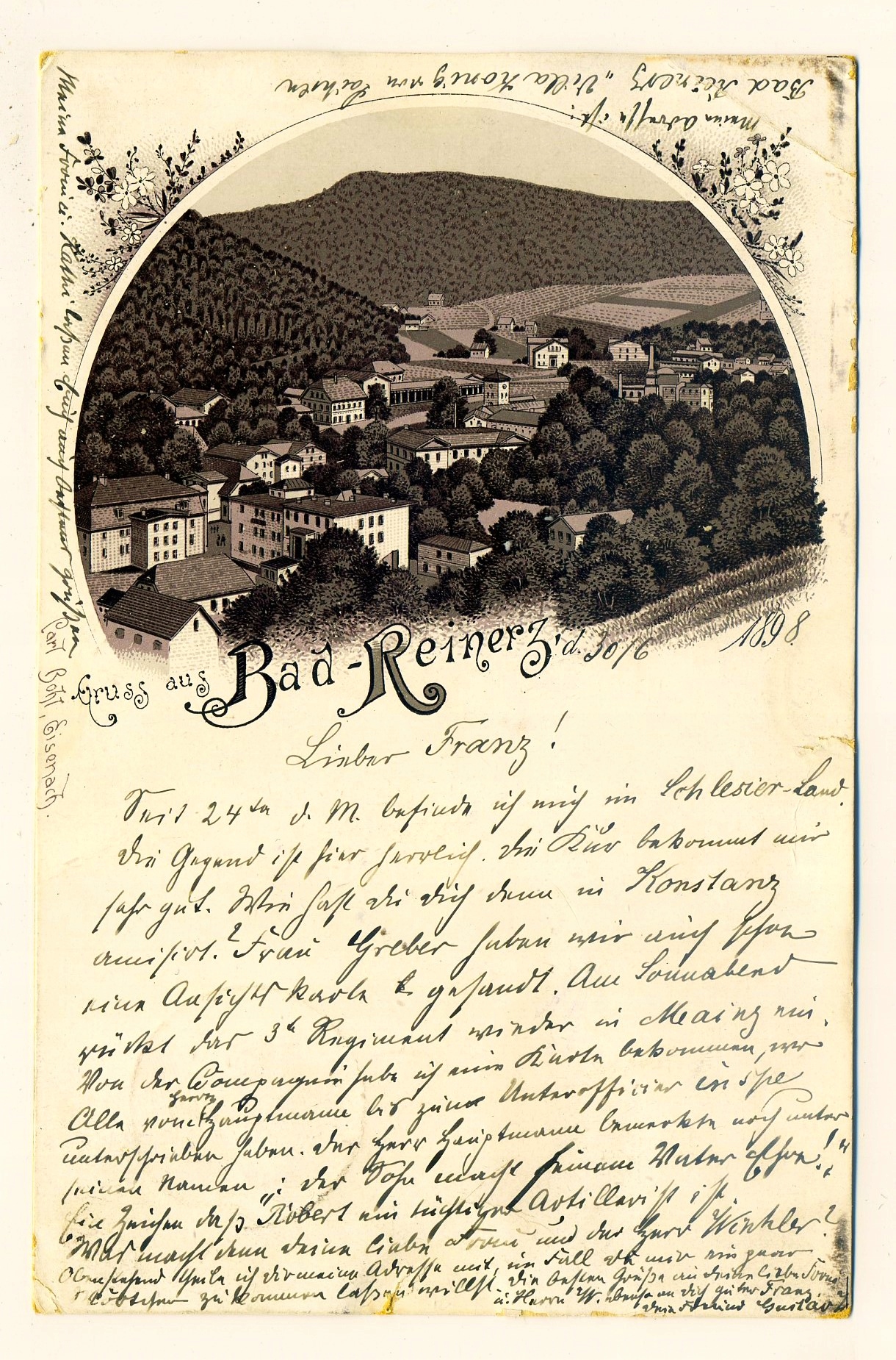 сьогодні на аукціоні листівка з Душників - загальний вигляд, літографія, надіслано, 1898 р., у дуже хорошому стані - (правий верхній кут зігнутий, дві маленькі сльози з альбому).