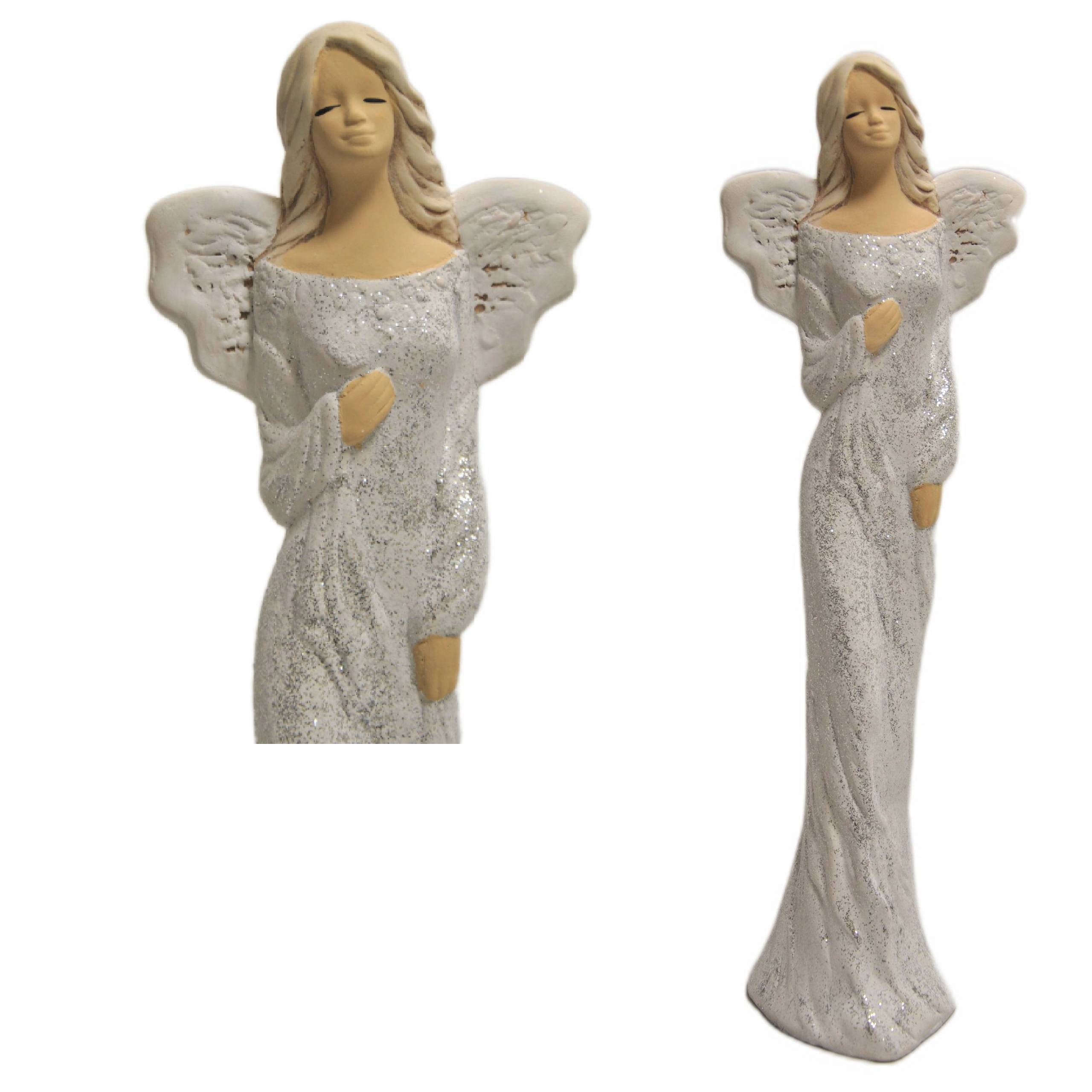 DUŻY ANIOŁ W SREBRNEJ SUKNI BROKAT NA PREZENT ANIOŁEK SKRZYDŁA UPOMINEK
