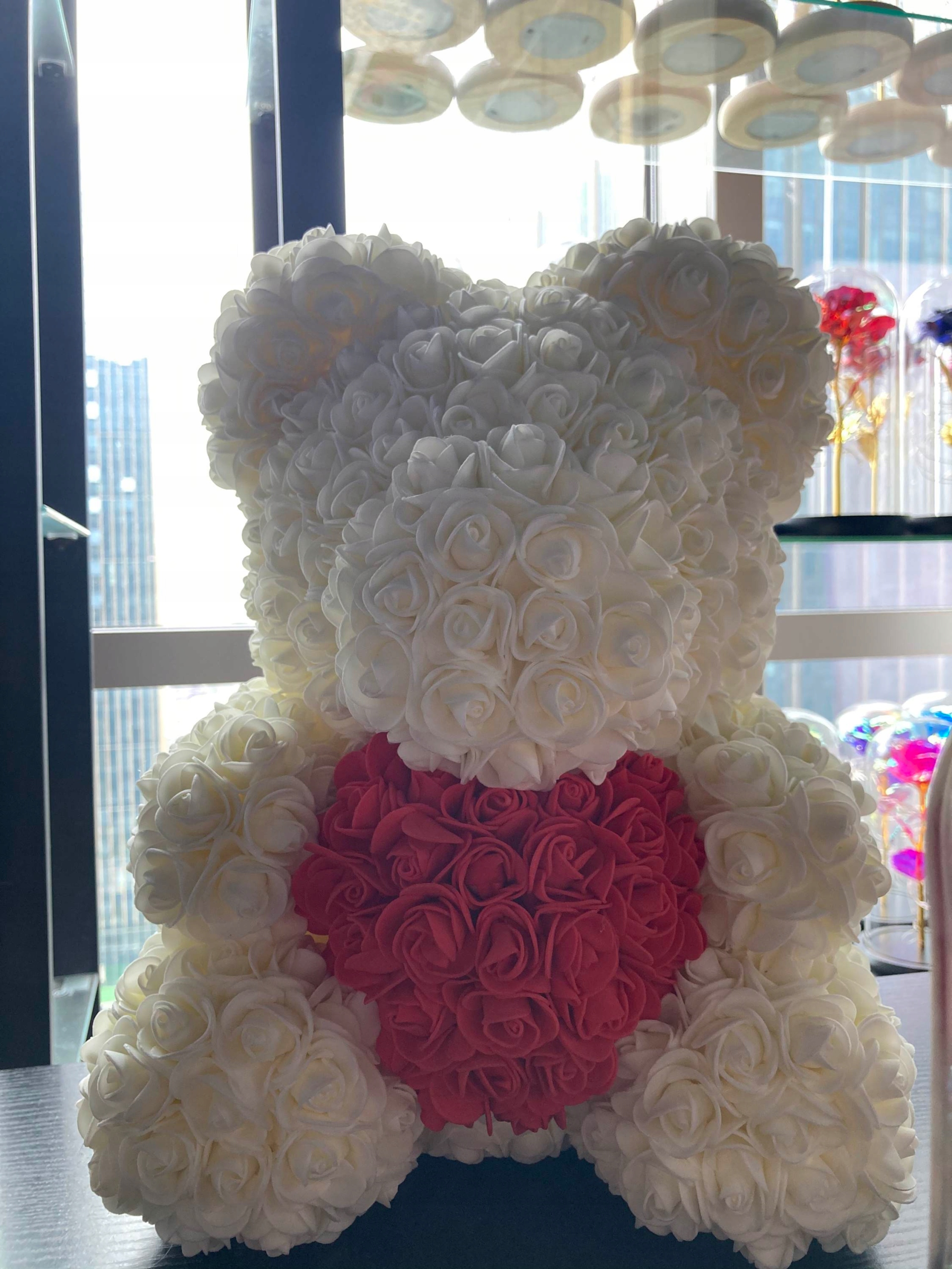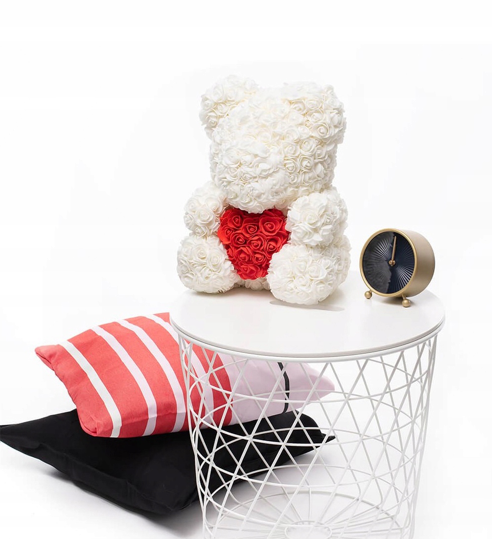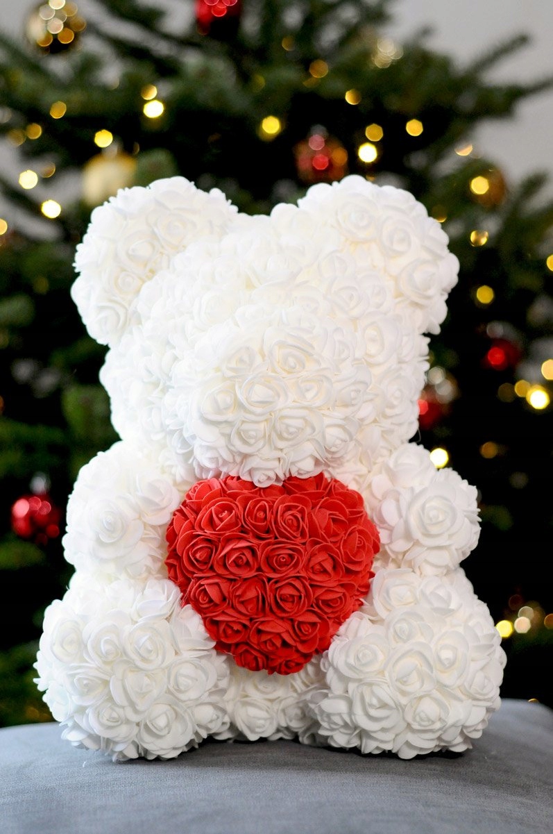 Наймодніший подарунок останнім часом, призначений для особливих випадків. Плюшевий ведмедик ретельно підготовлений, щоб здивувати найвищою якістю і стати розкішним і вічним подарунком для кожної жінки. Цей милий плюшевий ведмедик виготовлений зі штучних пінопластових троянд, тож вам не доведеться турбуватися про його міцність.