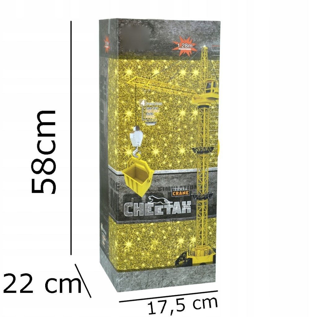 ✔️Стійка конструкція |✔️Діод на верхній частині крана |✔️Блок живлення дистанційного керування: 4 x AA (не включено) |✔️Висота: 128 см |✔️Функції дистанційного керування: обертання крана ліворуч/праворуч, підйом/опускання гака | ✔️Світлові та звукові ефекти