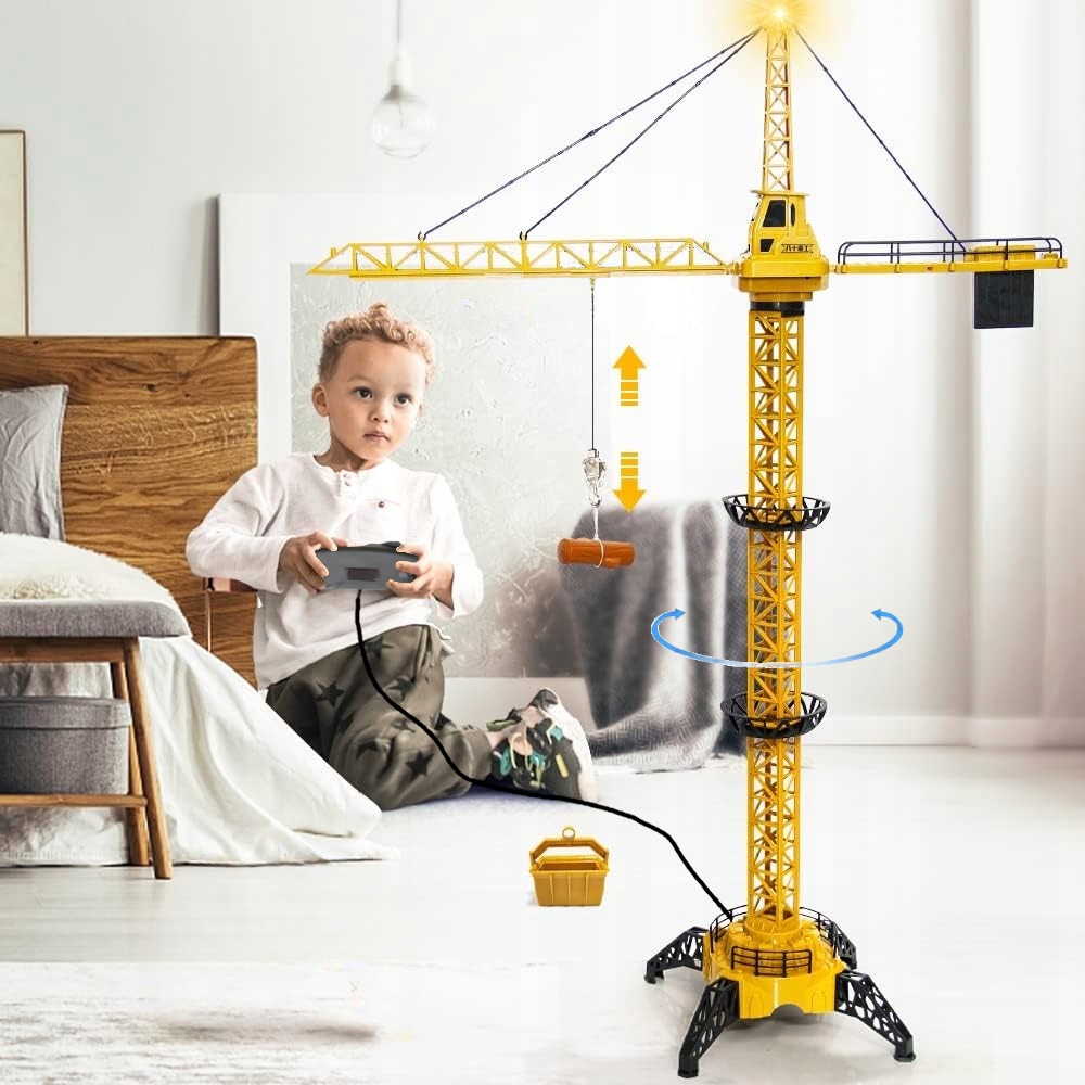 DUŻY DŹWIG ZDALNIE STEROWANY ŻURAW XXL OBROTOWY 128CM + DŹWIĘKI I DIODA LED