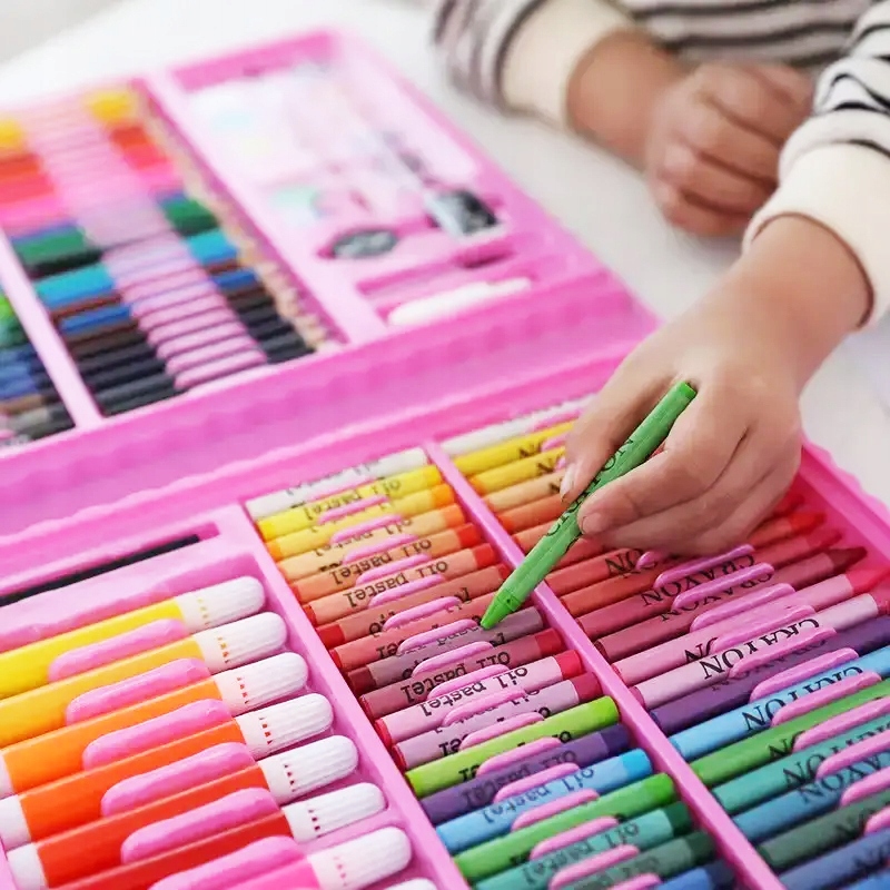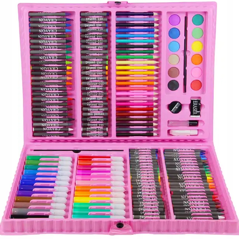 Набір приладдя для малювання для дітей. Олівці, фломастери, фарби та багато іншого. Усе упаковано у зручну валізу з ручкою.