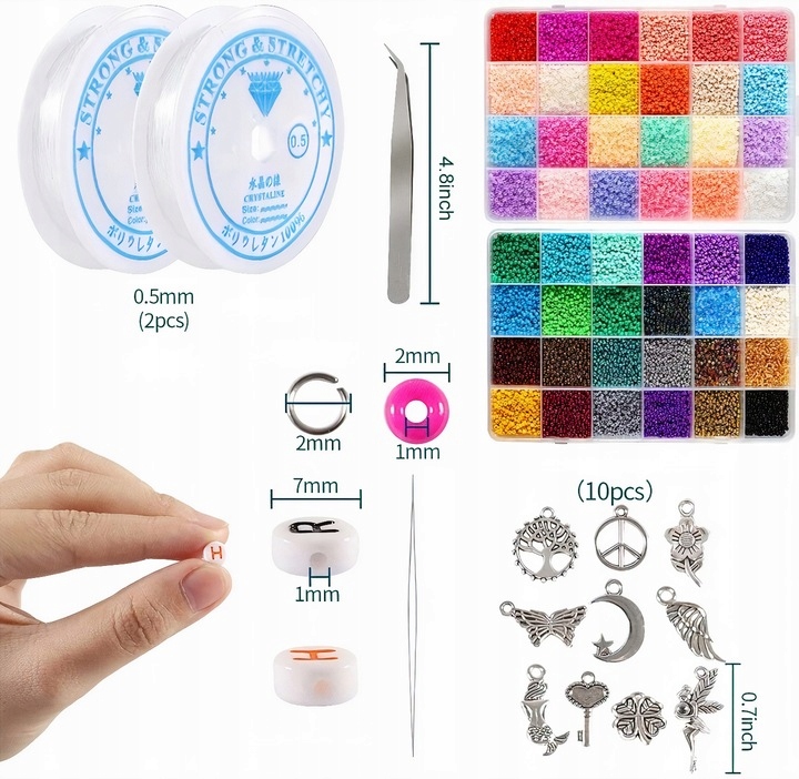 DUŻY ZESTAW KORALIKÓW DO ROBIENIA BIŻUTERII BRANSOLETEK NASZYJNIKÓW DIY