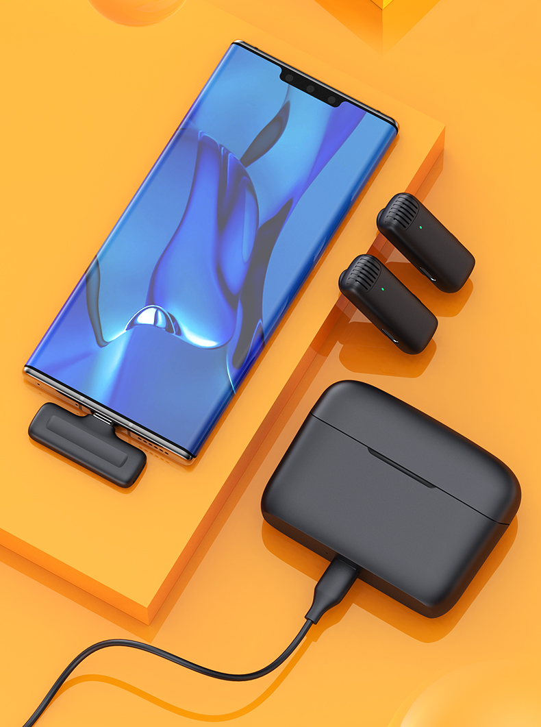 ДВА БЕЗДРОТОВІ МІКРОФОНИ TIE POWERBANK USB C ANDROID IOS LIVE VLOG