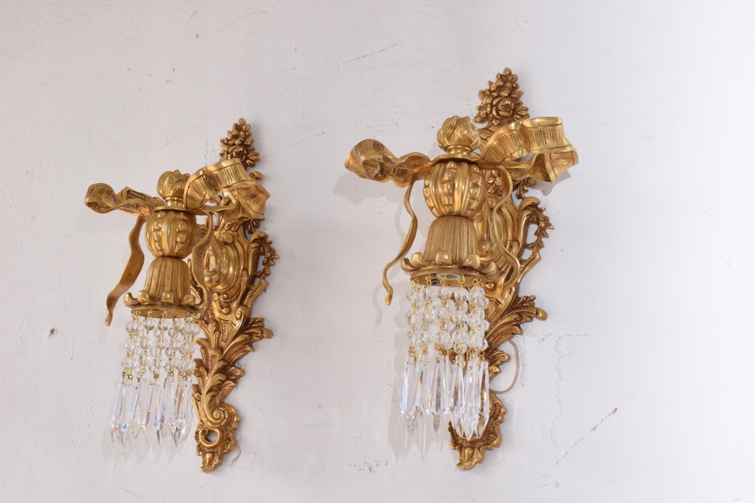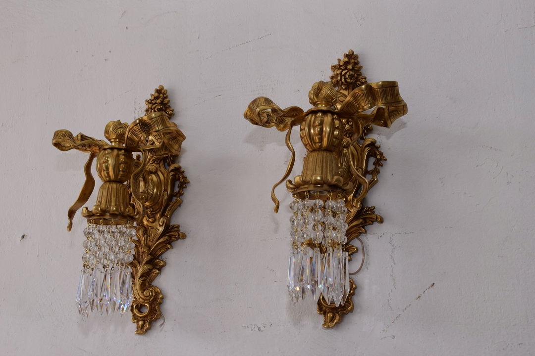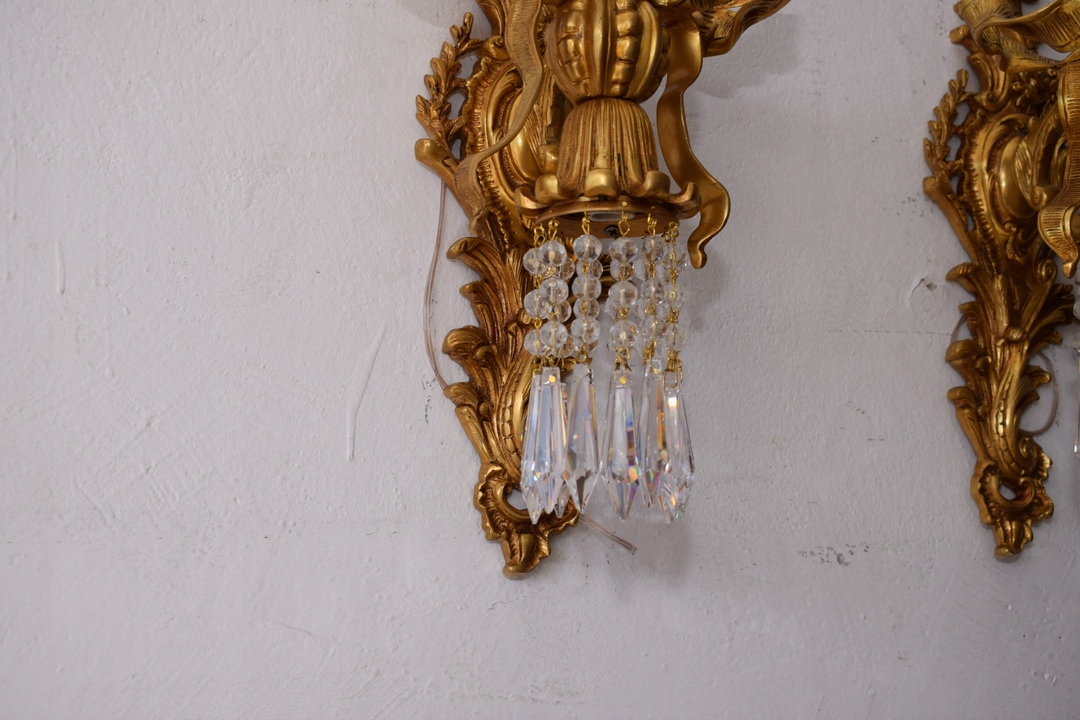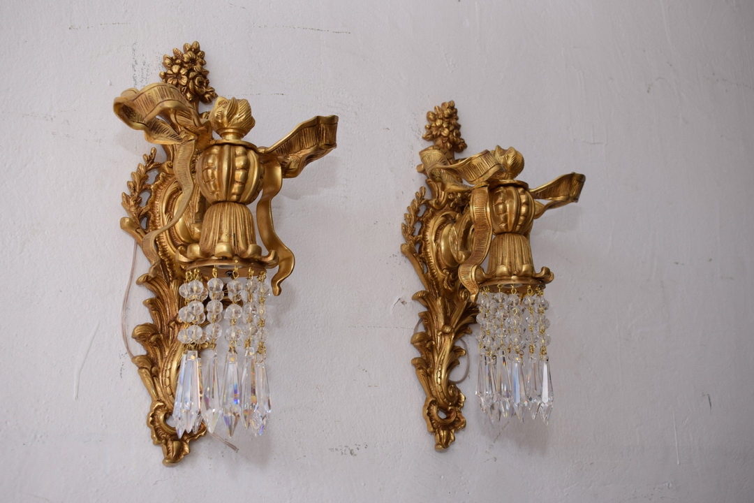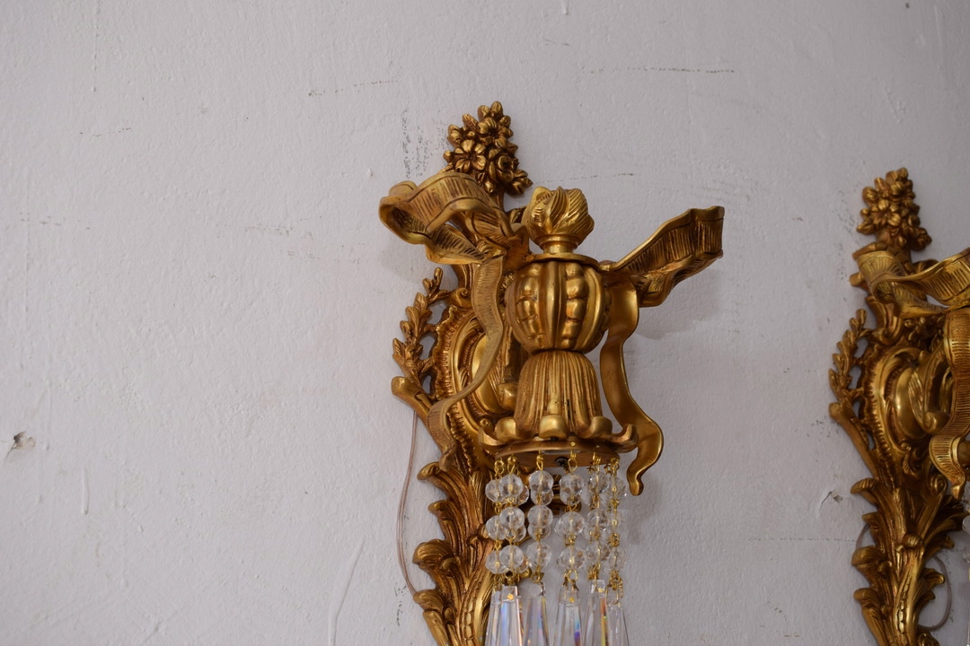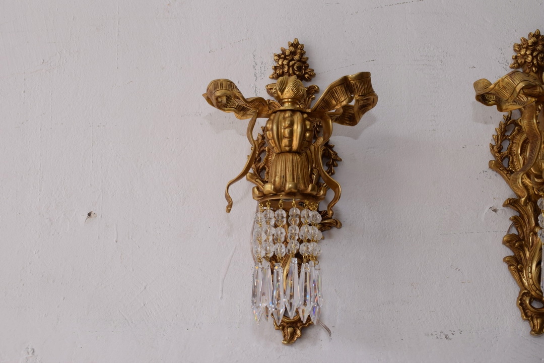 Два Бронзових палацових бра - Імперські свічники - Кристали - Банти