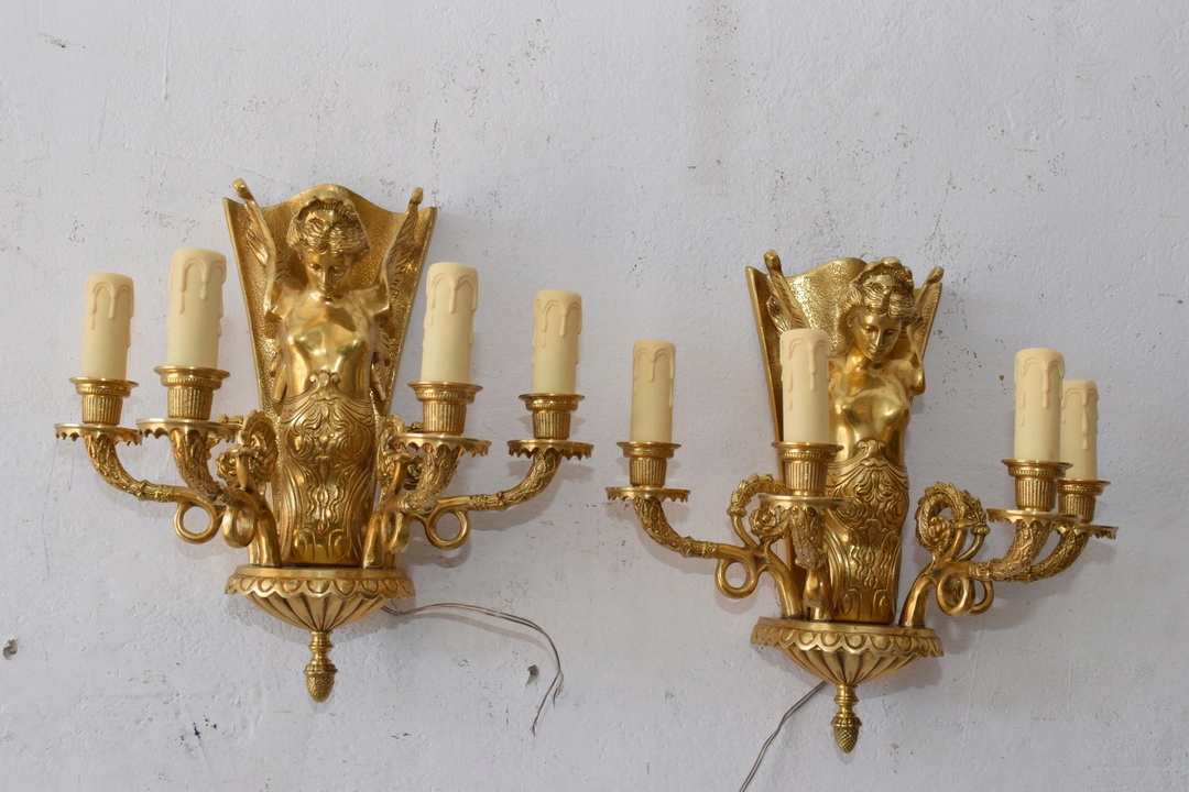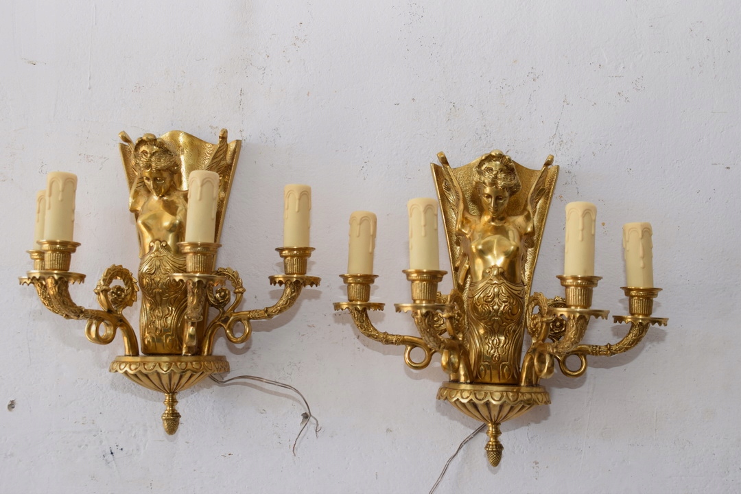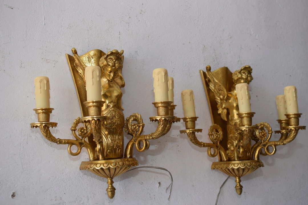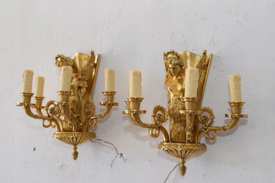 Два бронзових палацових бра - Імперські свічники - Кристали - Німфи