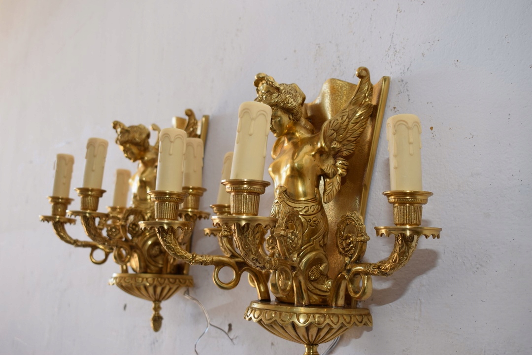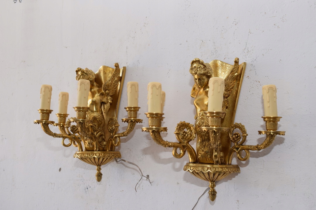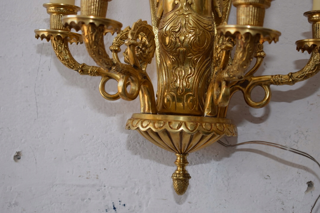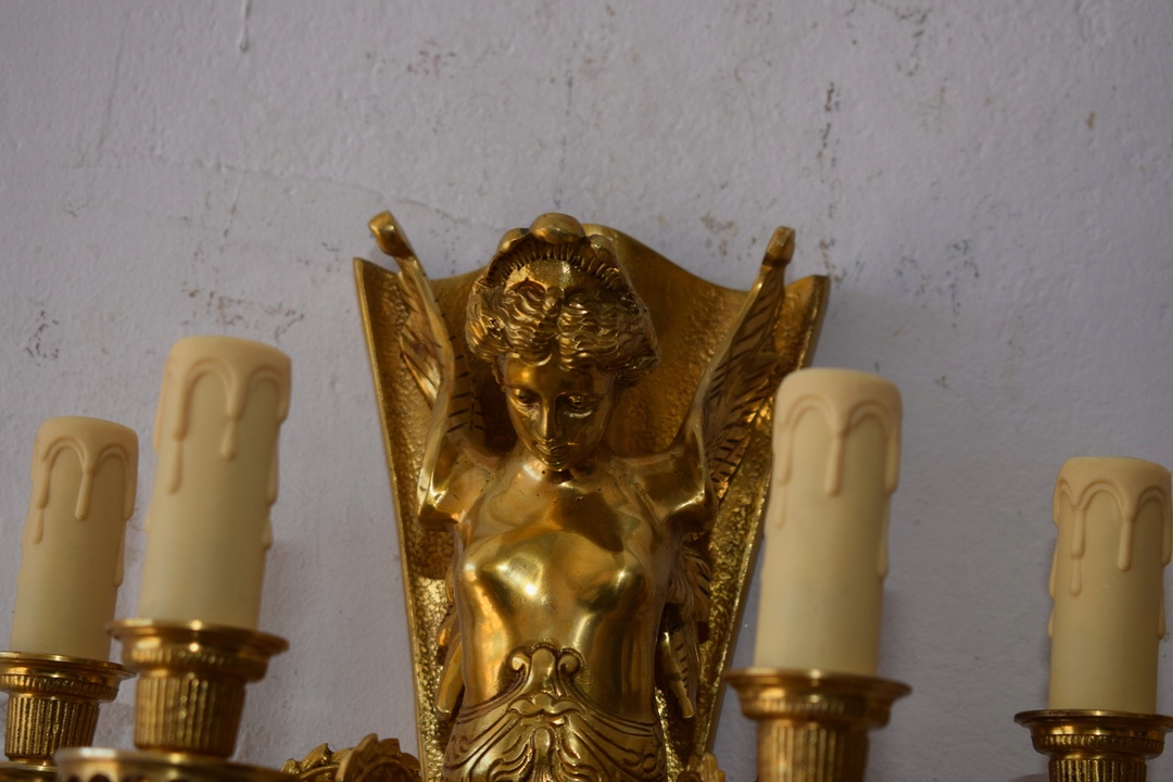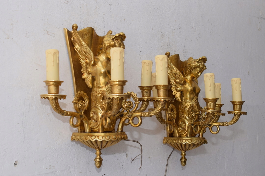 Два бронзових палацових бра - Імперські свічники - Кристали - Німфи