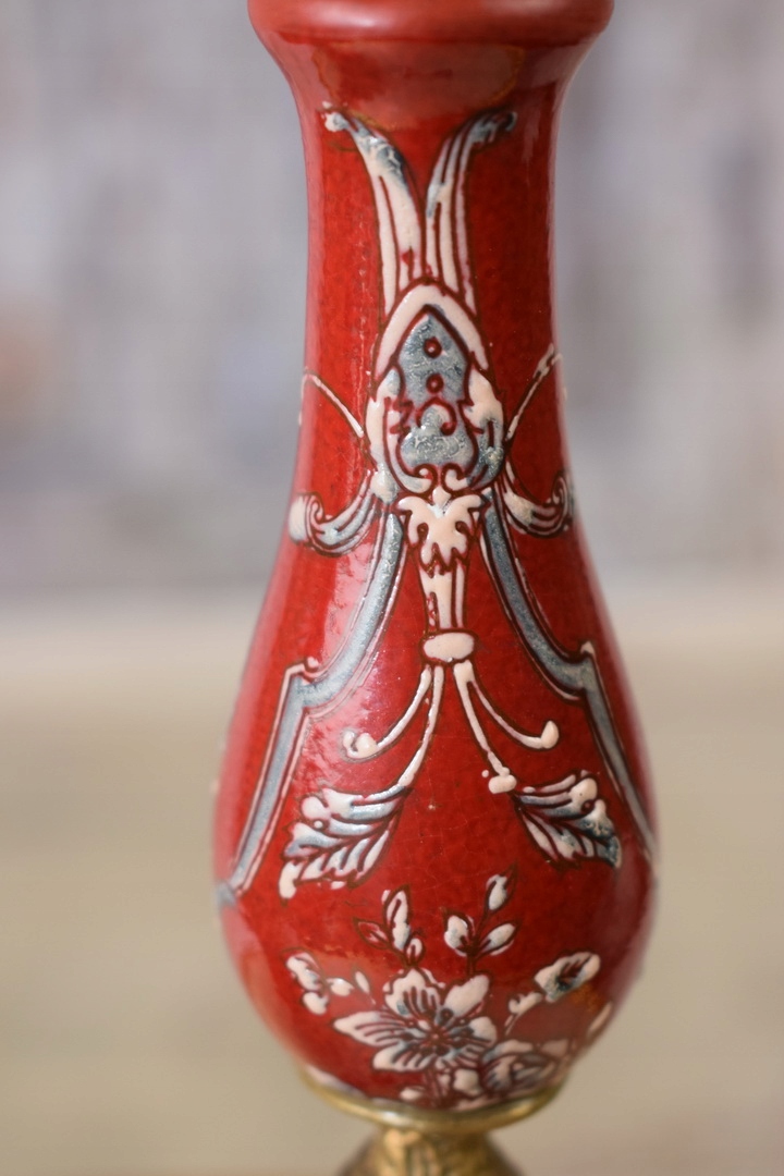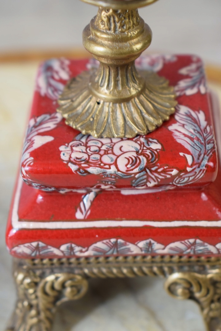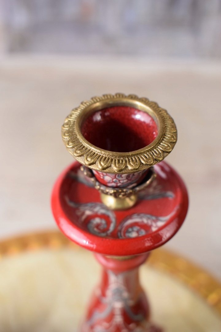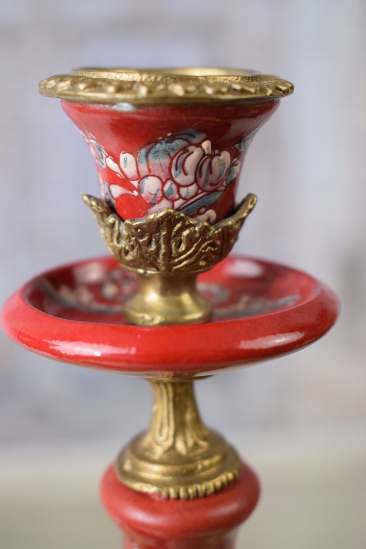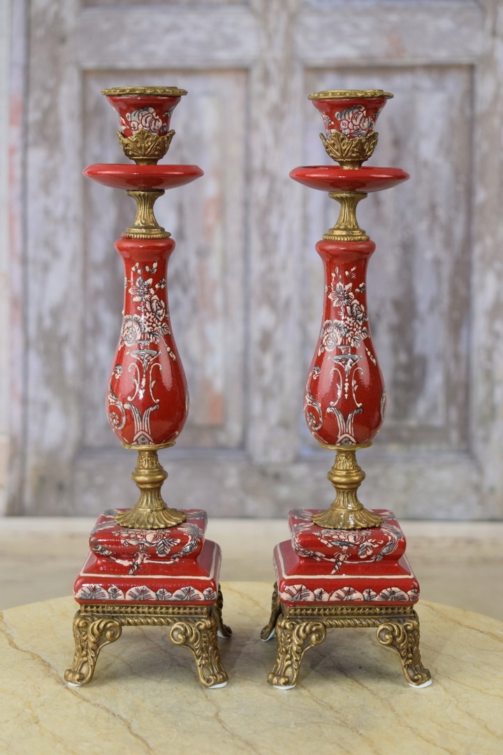 Два порцелянових свічника - фарфор з квітами - червоний