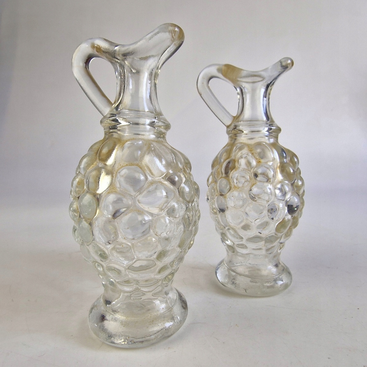 ДВА СТАРИХ СКЛЯНИХ ГЛЕЧИКА ДЛЯ ОЛІЇ ТА ОЦТУ. ВИНТАЖ Італія