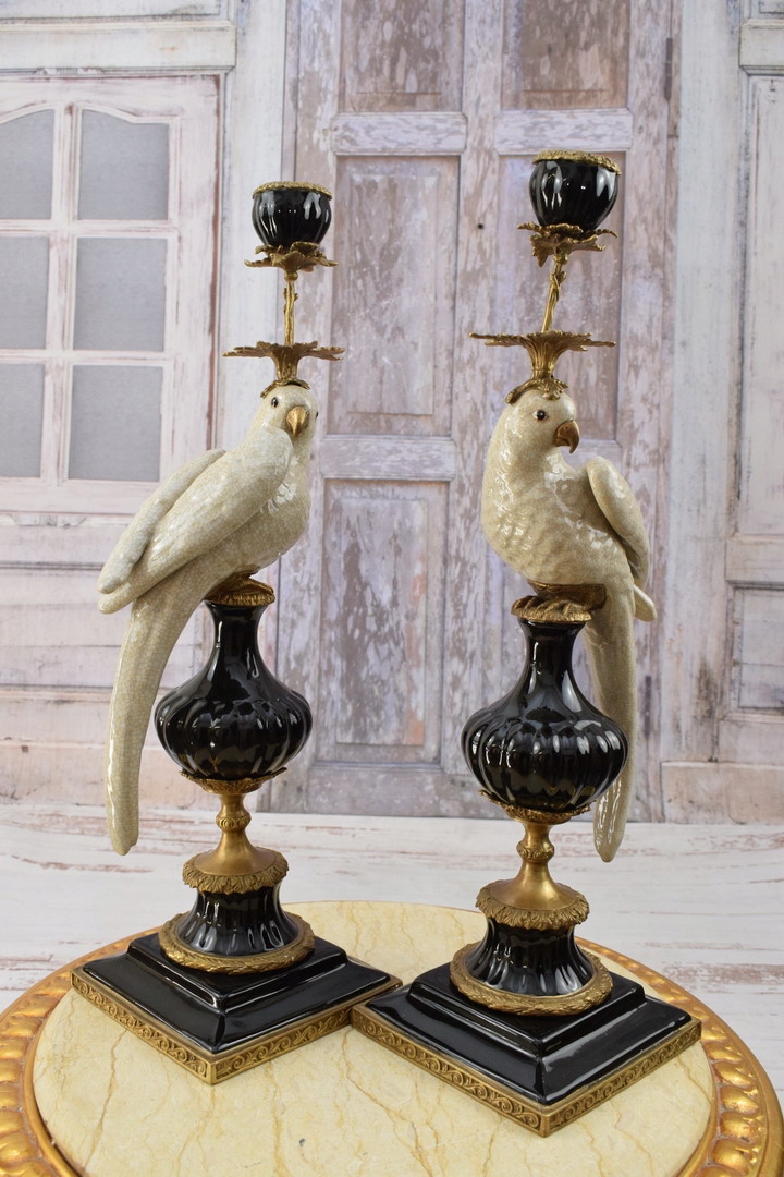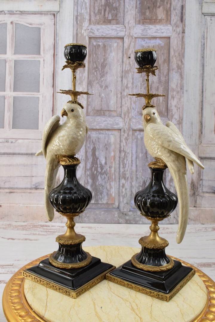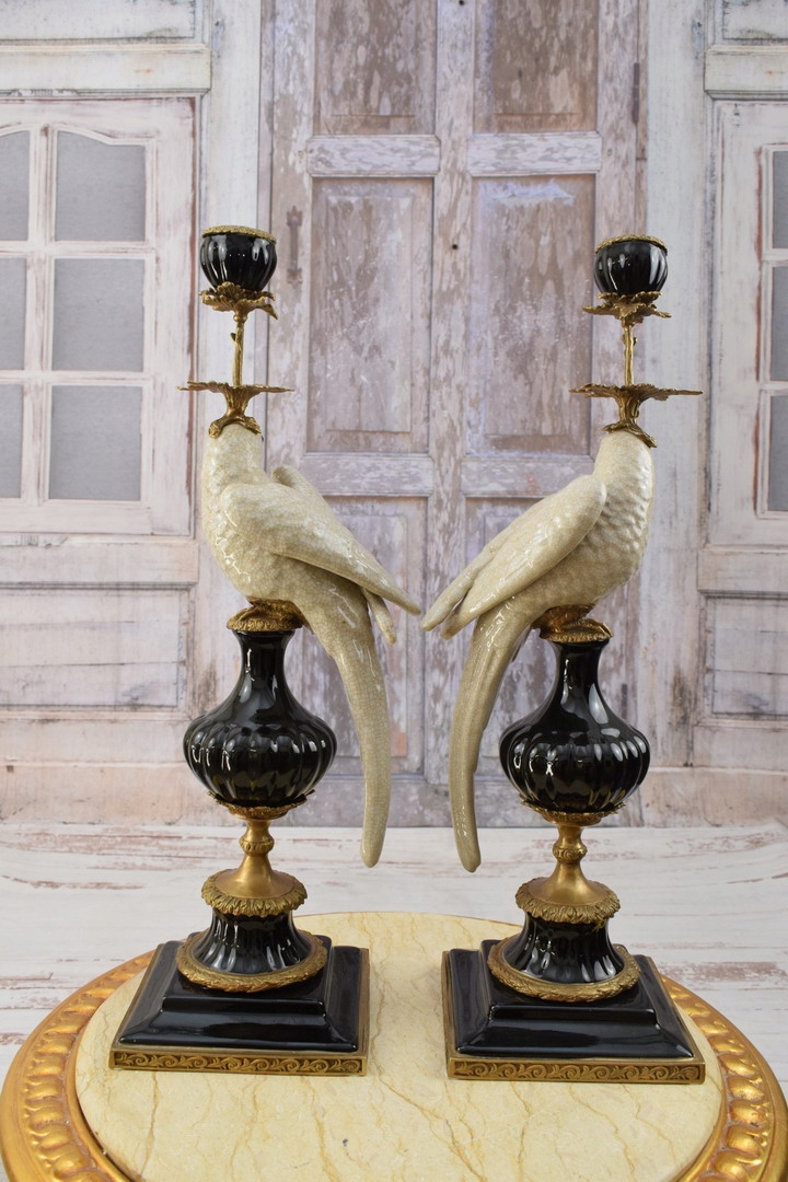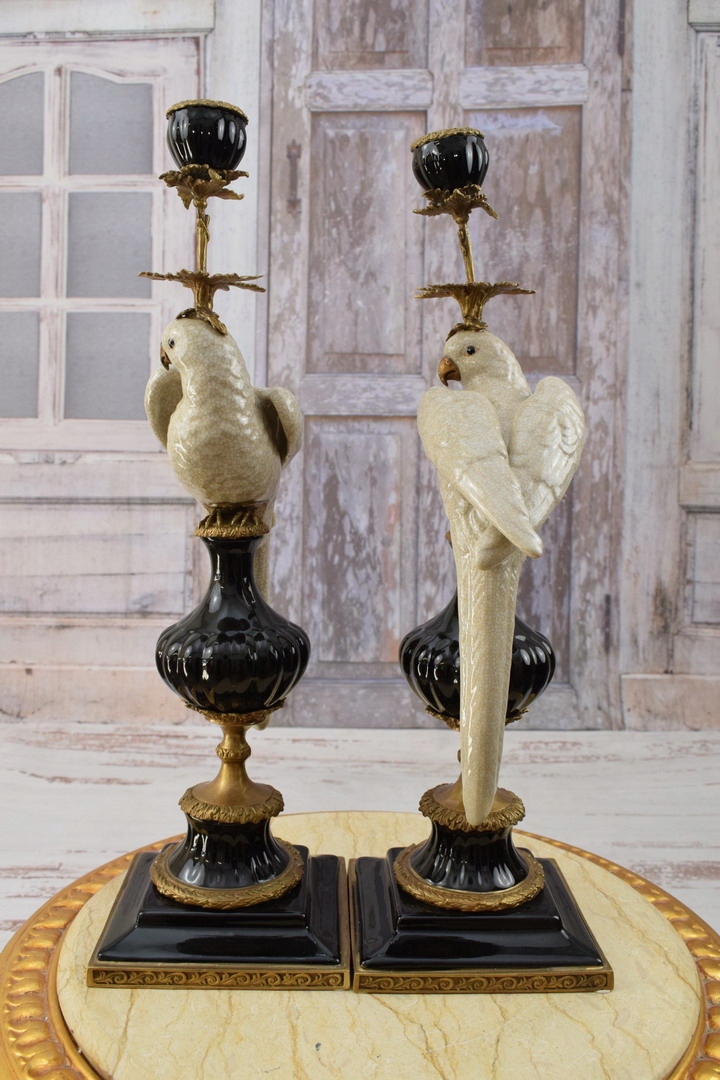 Два свічники-папуги - чорний і білий - порцеляна + бронза = знак. Франція