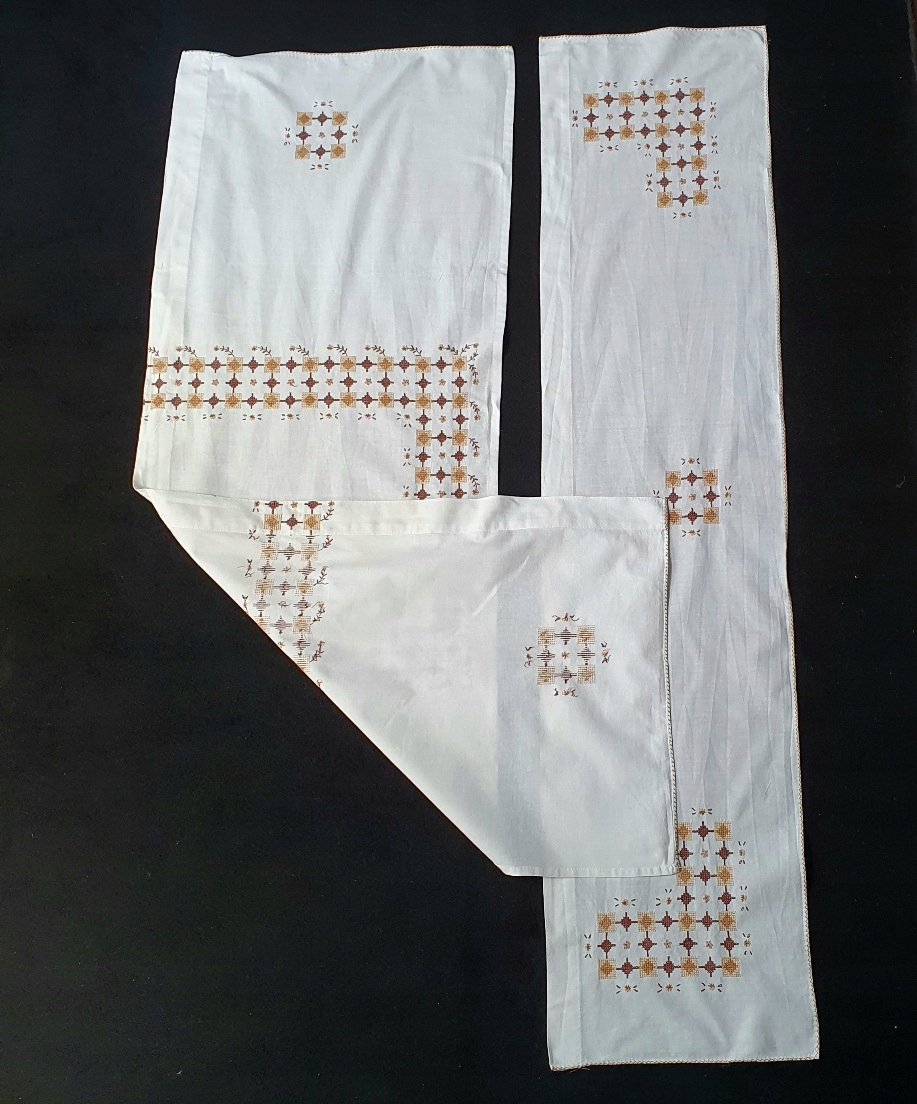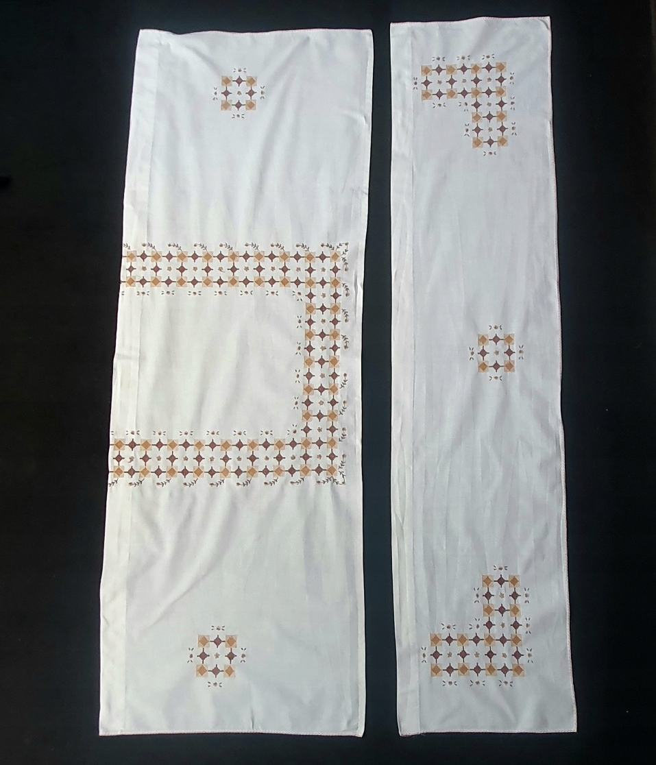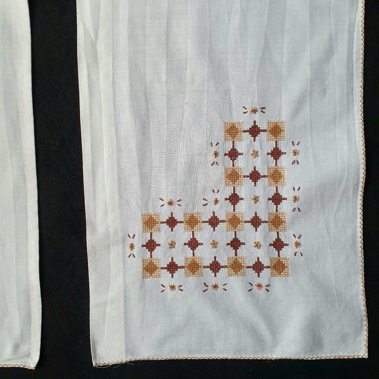 ДВА БІЛИХ ВИШИТИХ КОРИЧНЕВИХ ЛАМБРЕНКІНІВ ДОВЖ. 128