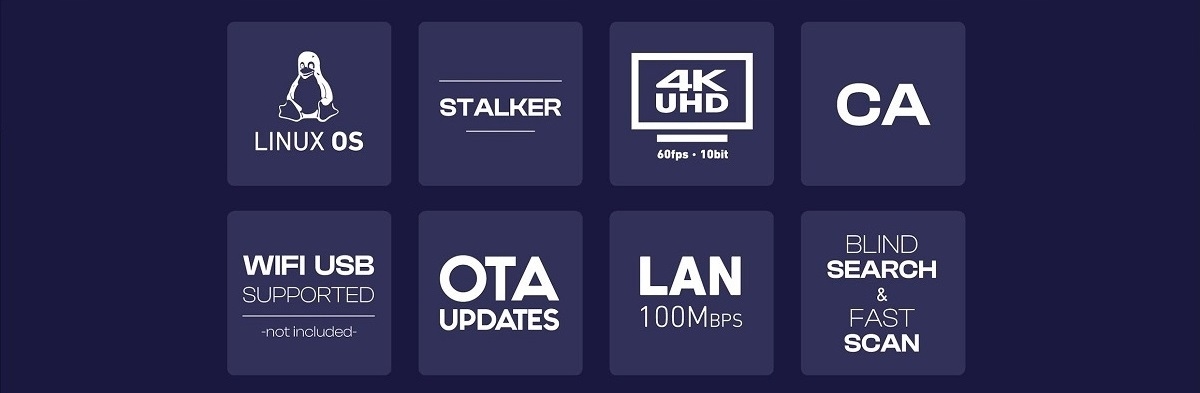 Підтримка UHD 4K H.265 у DVB та IPTV, Multistream та T2MI у DVB, багато додатків OTT/IPTV, підтримка порталів Xtream та Stalker, WEB-браузер Chromium, зручний WEB-інтерфейс для керування налаштуваннями декодера, багато розважальних порталів: усе це знаходиться в декодері.