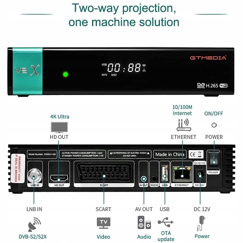 GTMEDIA FREESAT V8X satellite tuner with WiFi and a CCCAM emulator, Newcamd
