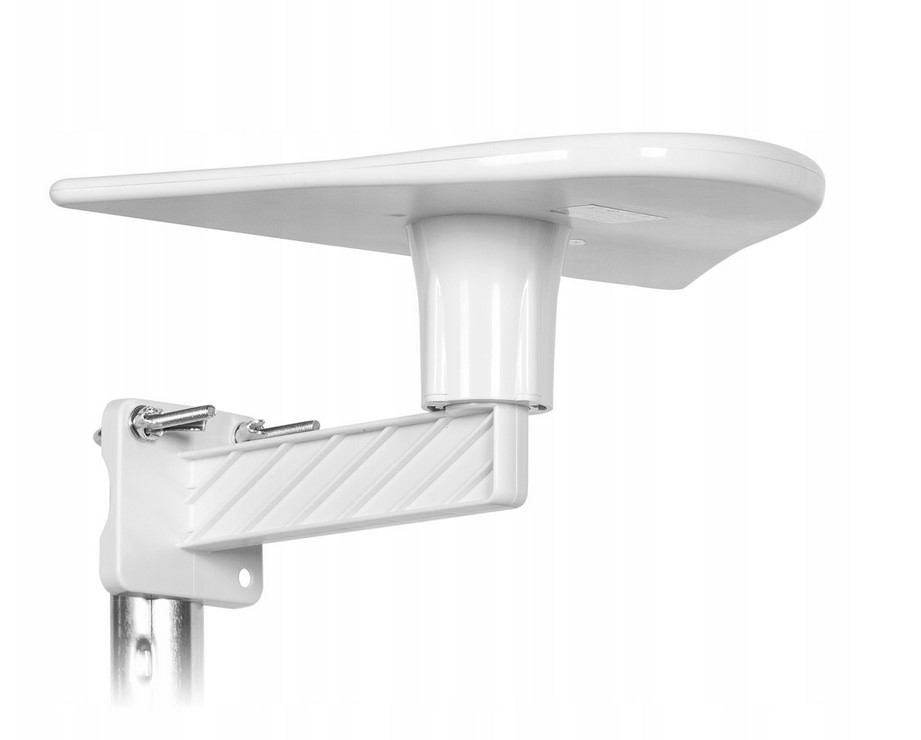 Завдяки кронштейну, що входить до комплекту, ви можете просвердлити антену безпосередньо до фасаду вашої будівлі, а затискач, що входить до комплекту, дозволить вам прикрутити антену безпосередньо до щогли антени або балконні перила.