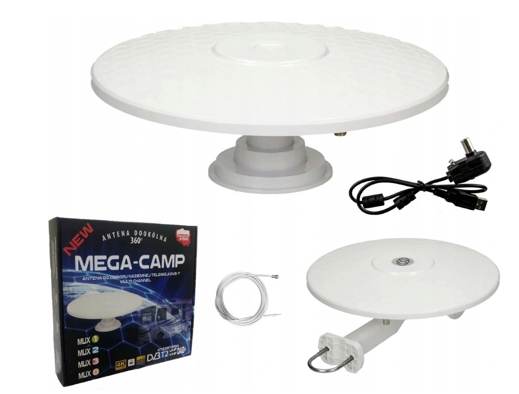 DVB-T антена завдяки своїм компактним розмірам і малій вазі зручна і незамінна в кожній поїздці. Однією з найбільших переваг антени є її всенаправлені робочі характеристики - це означає, що нам не потрібно спрямовувати антену на передавач. Крім того, високоякісні компоненти, які використовуються при виробництві, і герметична конструкція антени роблять цю антену надійною в будь-яких погодних умовах і працюють як під час руху, так і стоячи. Корпус виготовлений з дуже якісного ударостійкого полістиролу, тому його можна використовувати в будь-яких, навіть самих несприятливих, погодних умовах. Завдяки круглій формі та чорному кольорі антени вона виглядає чудово незалежно від місця встановлення.