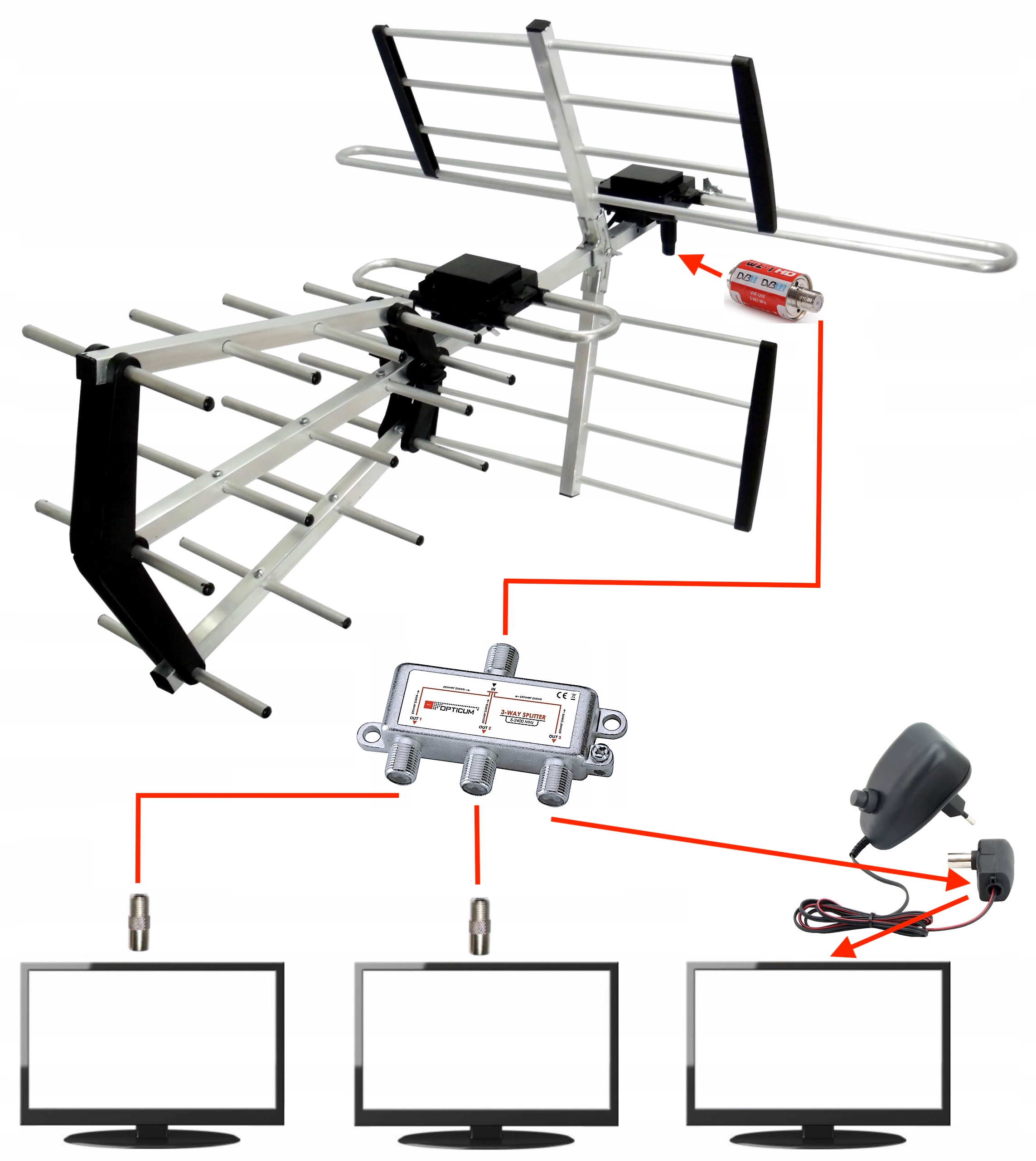 DVBT2 АНТЕНА Активна 4K 200 км КОМПЛЕКТ 4TV + КАБЕЛЬ 20 м