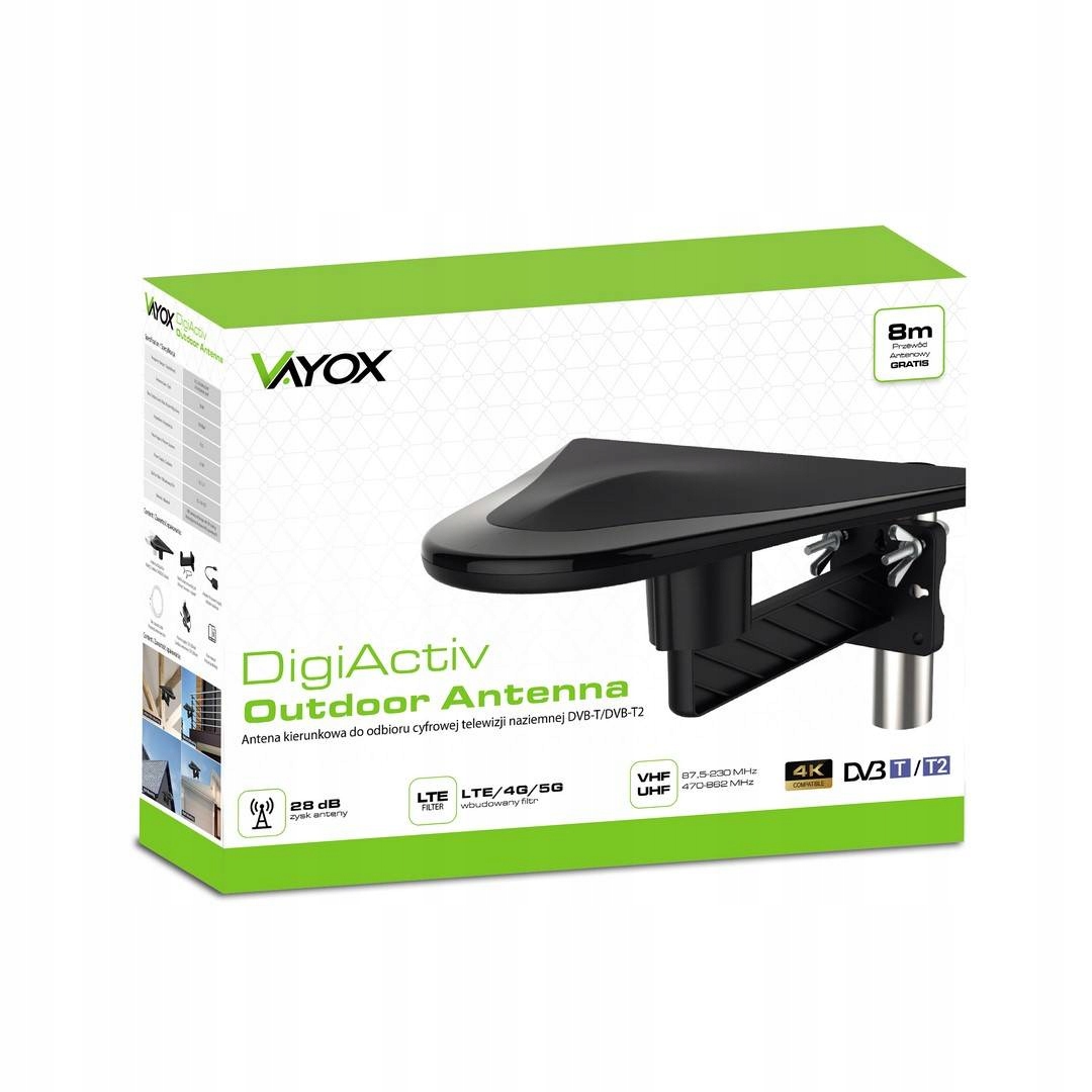 Антена DigiActiv була розроблена з думкою про польських користувачів. ринку, що робить її ідеальною для наших умов, антена адаптована для прийому каналів у найвищій роздільній здатності 4K і кодуванні DVB-T2