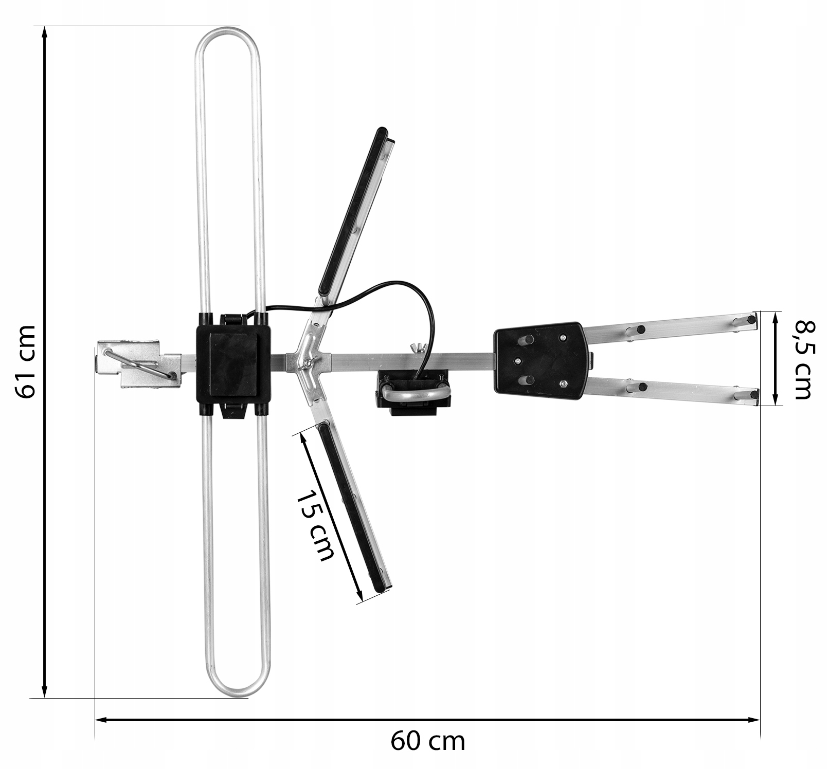 Антена дозволяє приймати всі MUX трансляції на польському ринку в горизонтальній або вертикальній поляризації, просто закрутіть диполь у положення, яке відповідає поляризації передавача у вашому регіоні