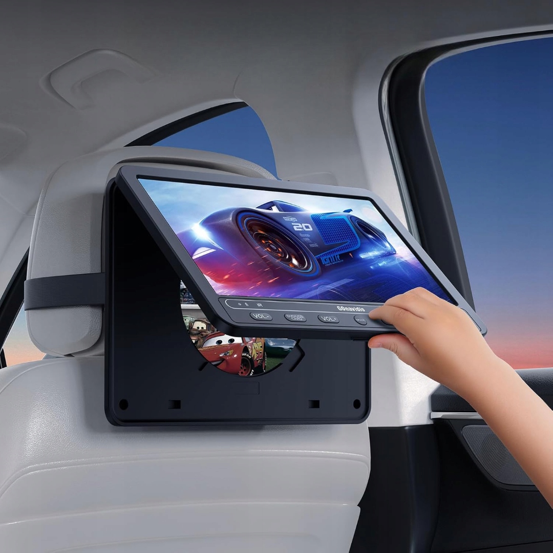 Завдяки вбудованій літій-іонній батареї цей автомобільний DVD-програвач забезпечує до 5 годин відтворення при повному зарядженні. У набір входить блок живлення та автомобільний зарядний пристрій — ідеальна система розваг на задньому сидінні для довгих подорожей або щоденного використання вдома.