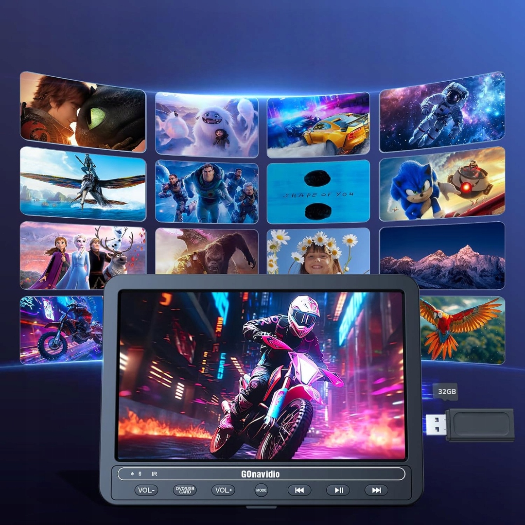 GONAVIDIO АВТОМОБІЛЬНИЙ DVD CD-ПЛЕЄР 2 ЕКРАНА 10.1" + ПУЛЬТ ДЛЯ НАВУШНИКІВ
