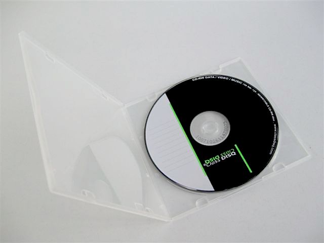 Коробка для одного DVD, виготовлена з прозорого дуже гнучкого пластику товщиною 5 мм. Пластик, з якого виготовлена коробка, м'який і гнучкий, тому коробка не схильна до пошкоджень, тріщин або роздавлювання.