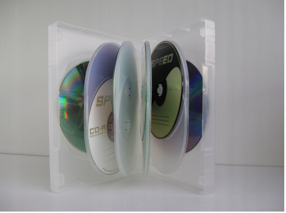 Box for 10 DVDs, виготовлений з МАТОВОГО гнучкого пластику (фактичний вигляд - матовий безбарвний пластик) товщиною 32 мм, тобто товщі СТАНДАРТНОГО. Всередині пластикові вставки, на які розміщуються диски.