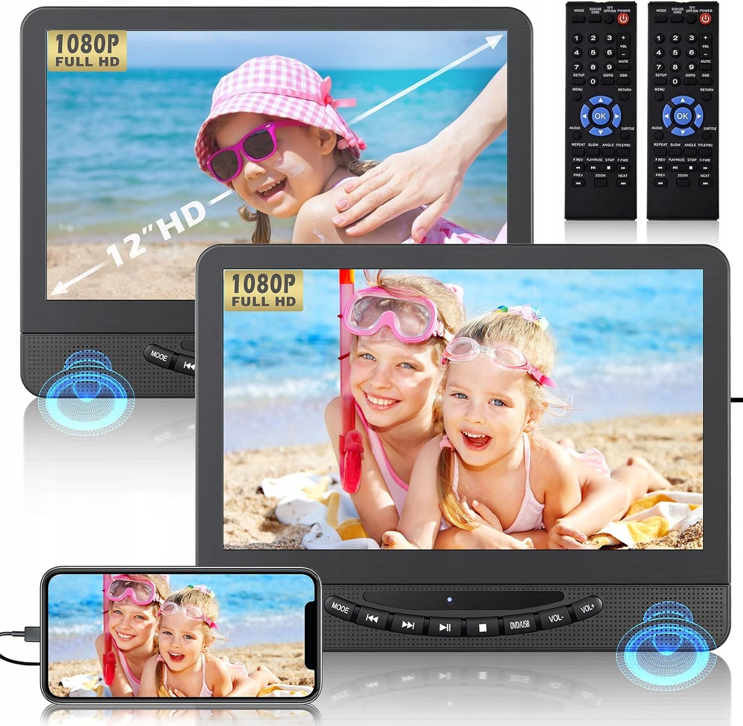 Оновлений 12-дюймовий екран Full HD 12-дюймовий автомобільний DVD-програвач забезпечує чітку якість зображення 1080p. Дозволяє відтворювати два різні фільми або віддзеркалювати один DVD на обох моніторах за допомогою простого AV-кабелю. У набір входить 2 кронштейни для кріплення та 6 ременів для підголовників, два варіанти кріплення.