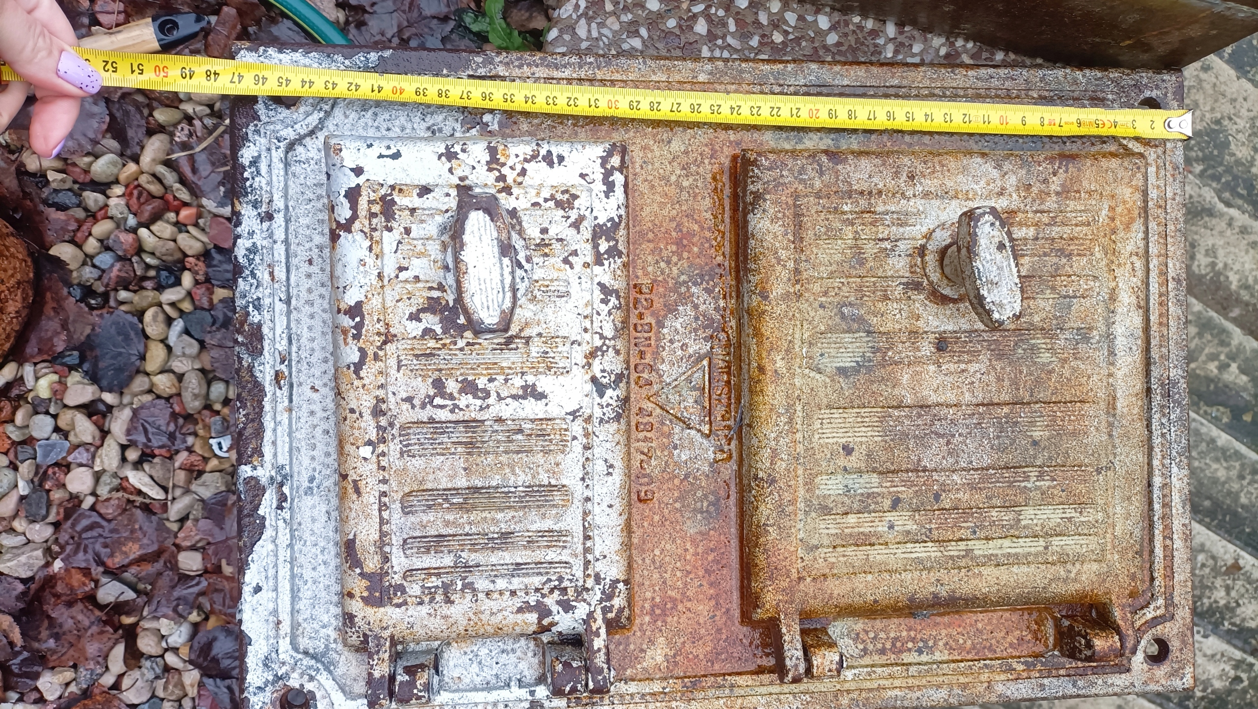 Дверцята коптильні чавунні старовинні, підпис