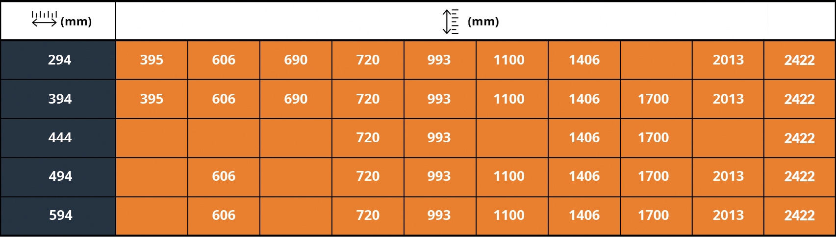 Таблиця представляє всі доступні розміри дверей, доступні на інших наших аукціонах: