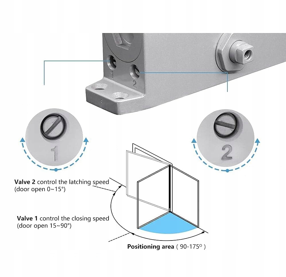 ✔ Жодна зовнішня сила або межа дверей не потрібно, щоб двері відкритими і двері можуть бути відчинені під кутом 90 ° ~ 180 °. Досить витягнути двері менше 90 ° і автоматично закриється. ✔ Вони - це 2 клапани для незалежного контролю швидкості закриття та блокування, ви можете адаптувати їх до своїх потреб. >